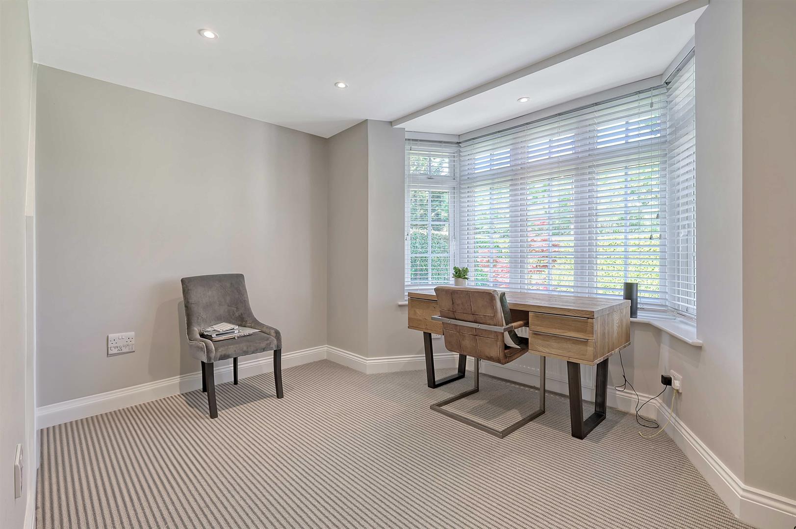 Study/Bedroom Four - 3.66 x 2.97 - Bay window with views across the secluded and private front garden and the driveway, preparation for wall mounted television, understairs storage area, radiator.
