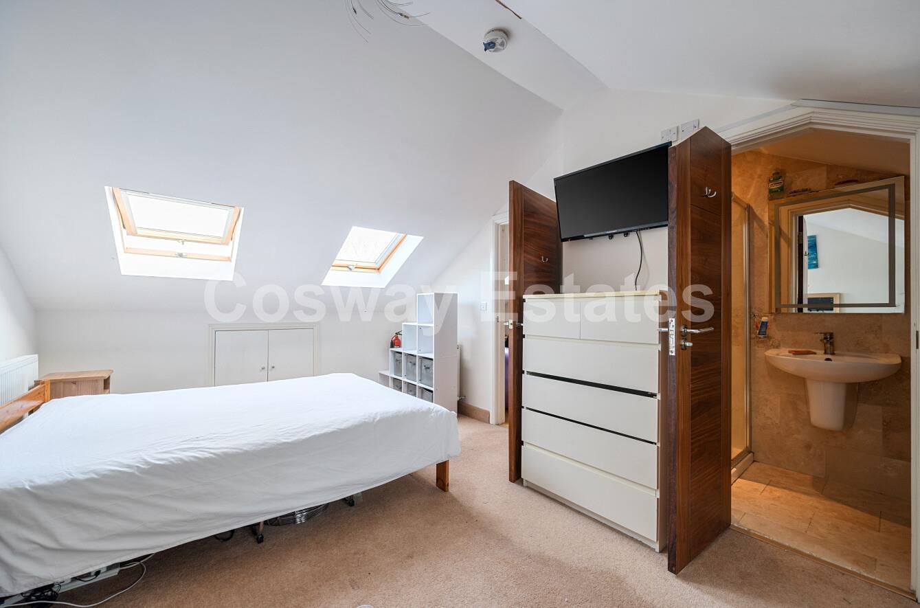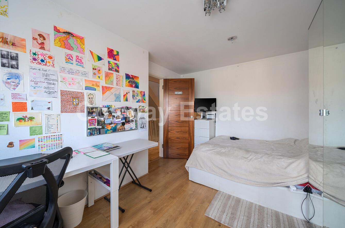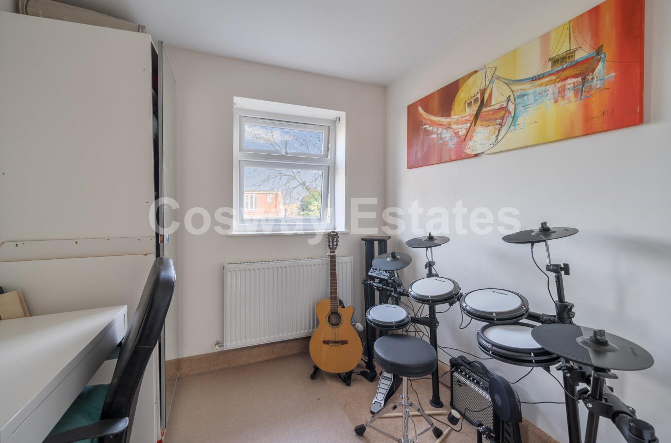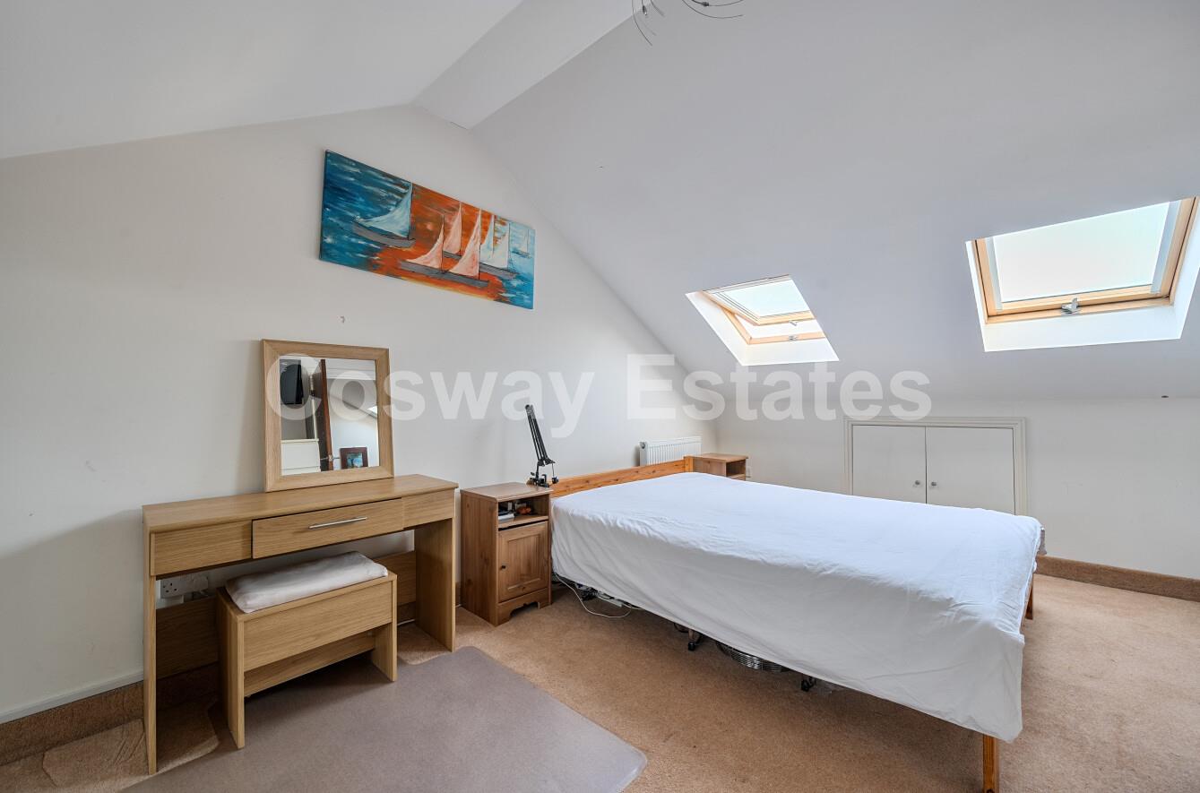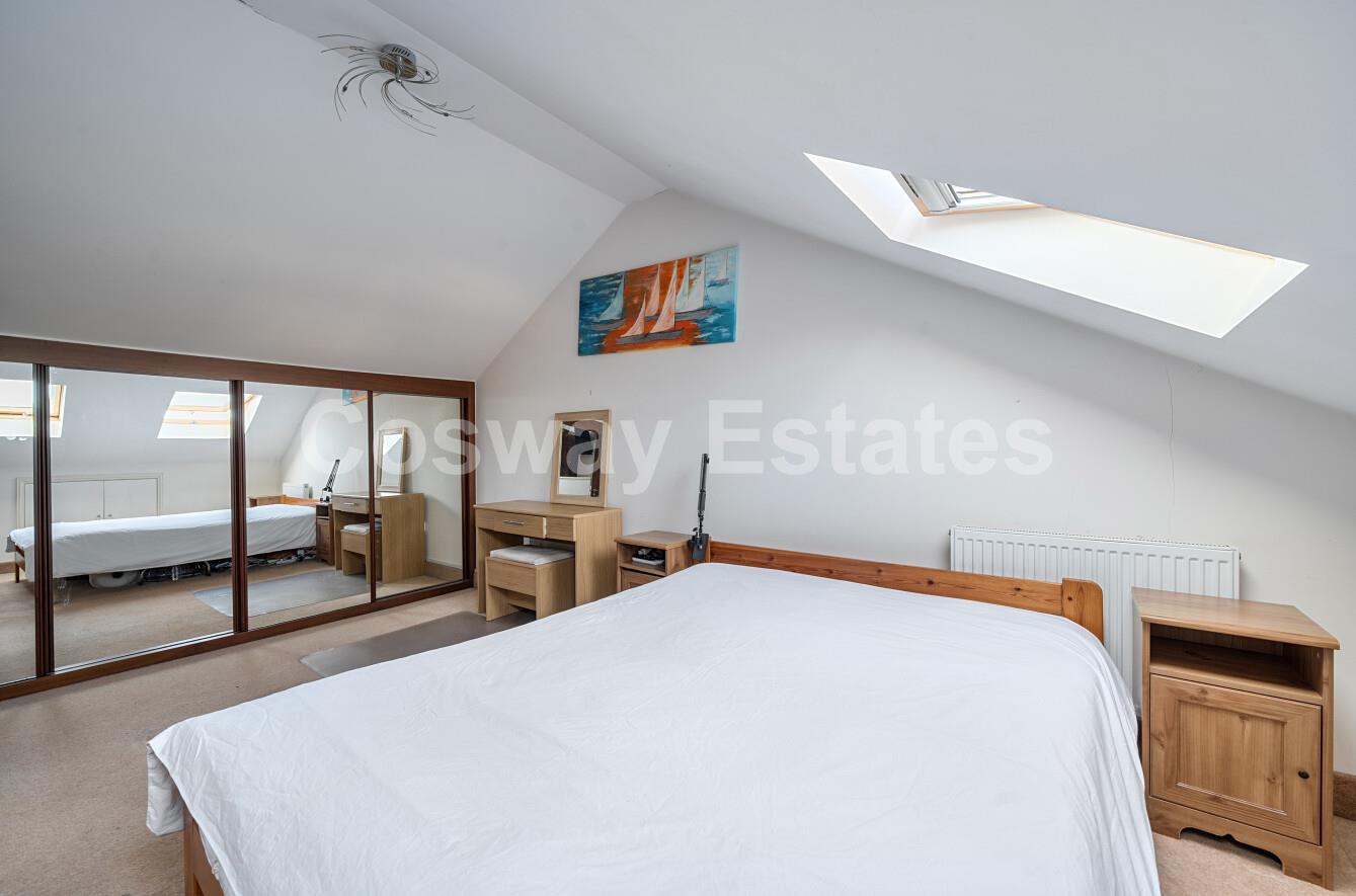 The first floor comprises three bedrooms, offering flexible accommodation suitable for family members, guests, or home office use, complemented by a family bathroom. The second floor hosts an impressive principal bedroom suite, benefiting from generous proportions and the convenience of an en-suite bathroom.