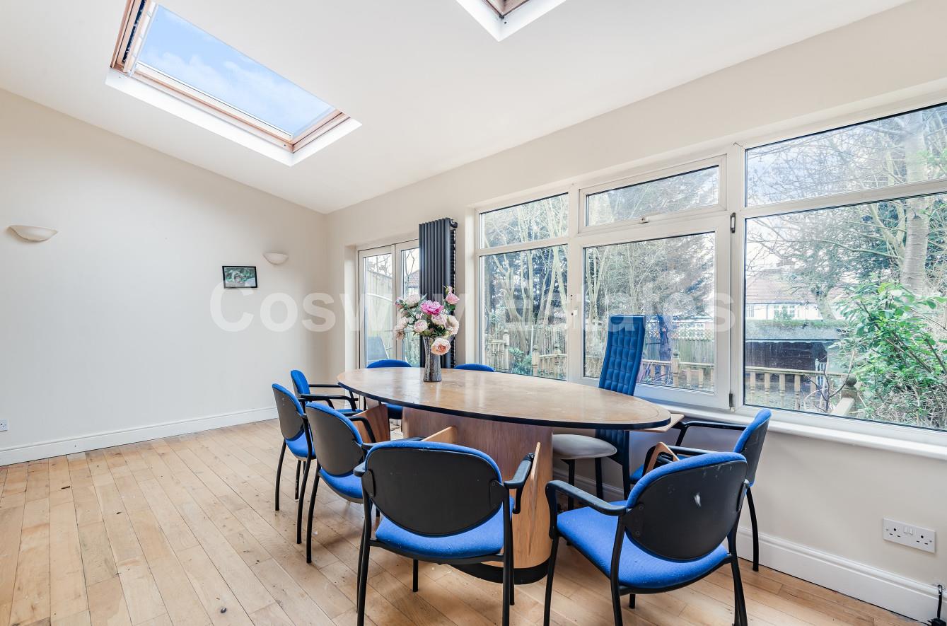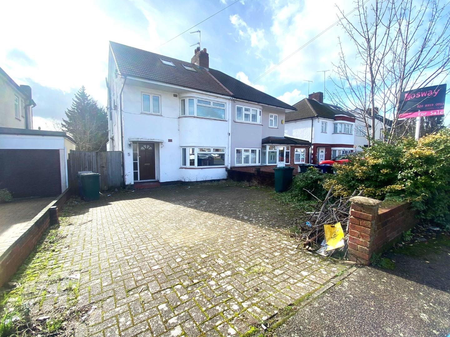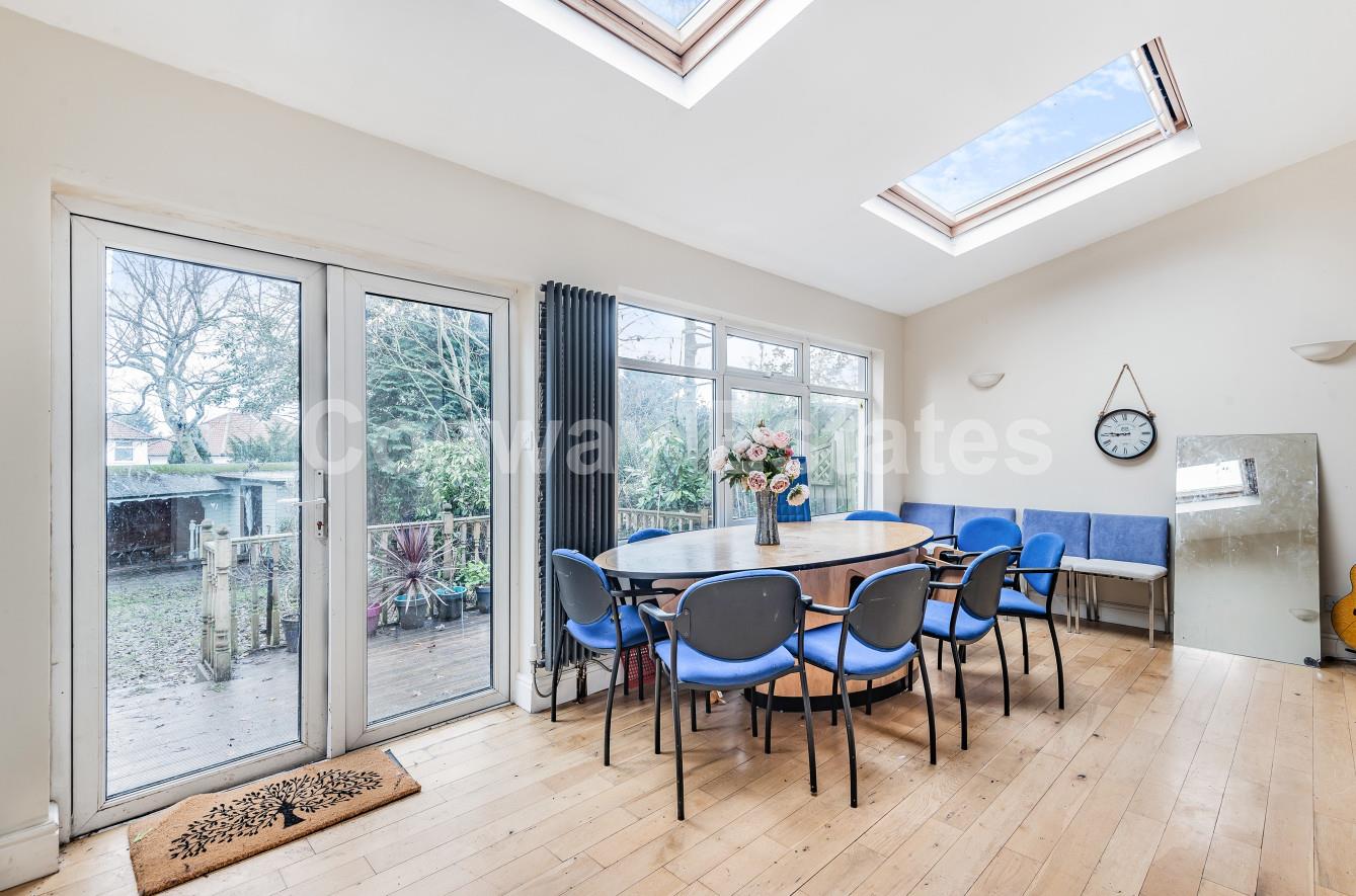 NEW - FERNSIDE AVENUE, MILL HILL, NW7- OVER 2000 SQ FT A WELL PRESENTED SEMI DETACHED HOUSE IN POPULAR TURNING. A extended five/six bedroom, three reception room, three bathroom semi detached house situated in a popular residential turning off Ellesmere Avenue, close to the local shops within easy access of sought after local schools and approximately one mile from Mill Hill Broadway. The property offers spacious & flexible family accommodation arranged over three floors and comprises a lounge, fitted kitchen open plan to family room and dining room, study, TV room/bedroom six, ground floor bathroom, five bedrooms, family bathroom, shower room, approximately 60ft attractive rear garden with raised wooden deck and block paved frontage providing off street parking for three/four cars. Other benefits include double glazing, gas central heating and wood flooring.