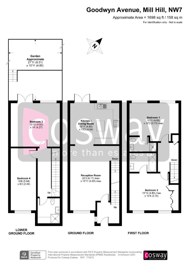 1700 SQ FT - Cosway Estates are pleased to offer for sale this charming well-presented and larger then average 4 double bedroom, 3 storey townhouse with a sweeping staircase leading to the front door with entrance to the reception level, and is situated in a tree-lined road moments to Mill Hill Broadway's shops, restaurants, coffee shops and Thameslink train station. The property comprises of four spacious bedrooms, three bathrooms, two reception rooms and modern fitted kitchen. This property also benefits from a private west facing rear garden and off-street parking.