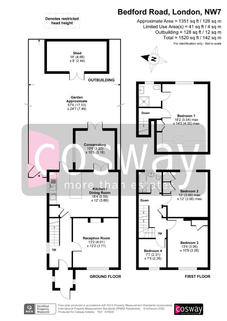 The first floor boasts 3 spacious bedrooms and a family bathroom, on the second floor there is a large master bedroom, with fitted wardrobes and an en-suite bathroom.