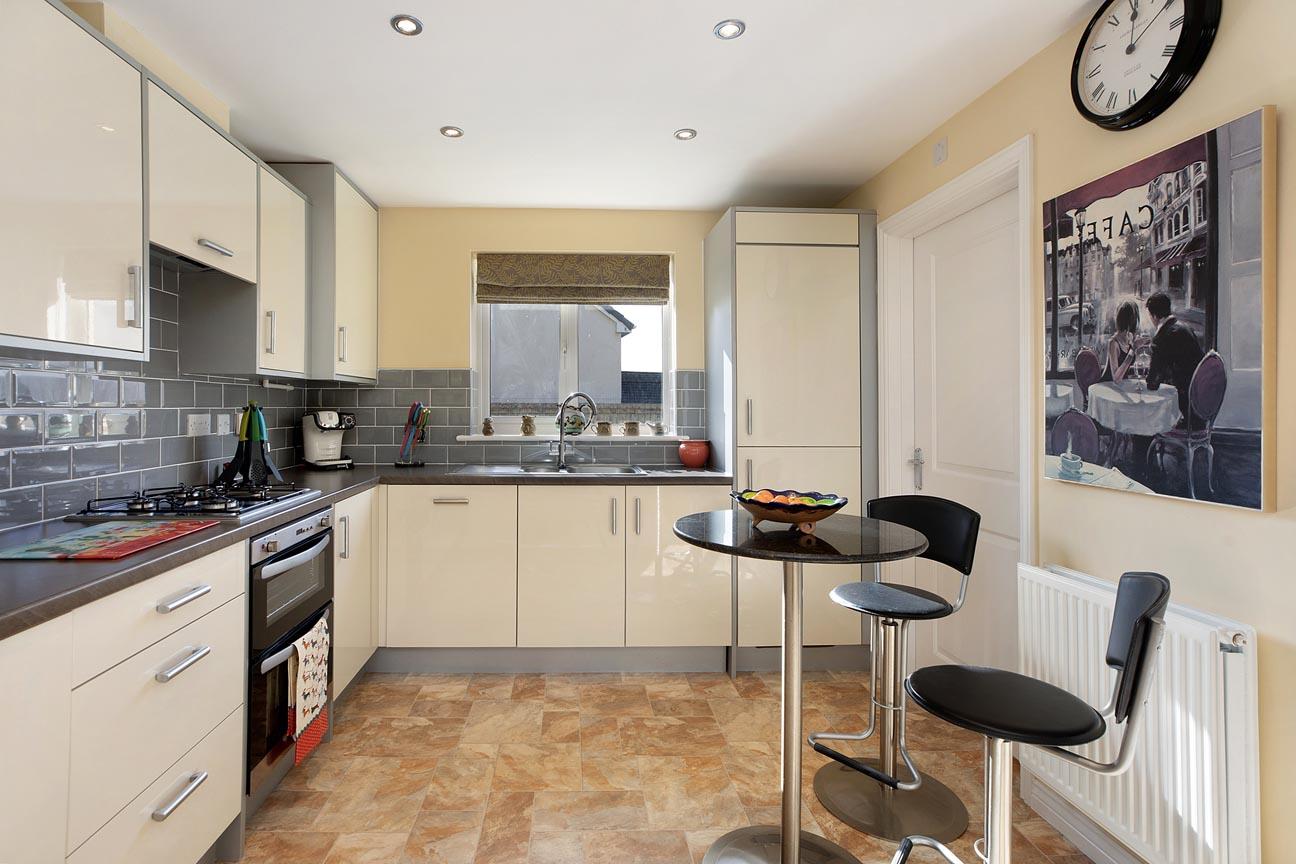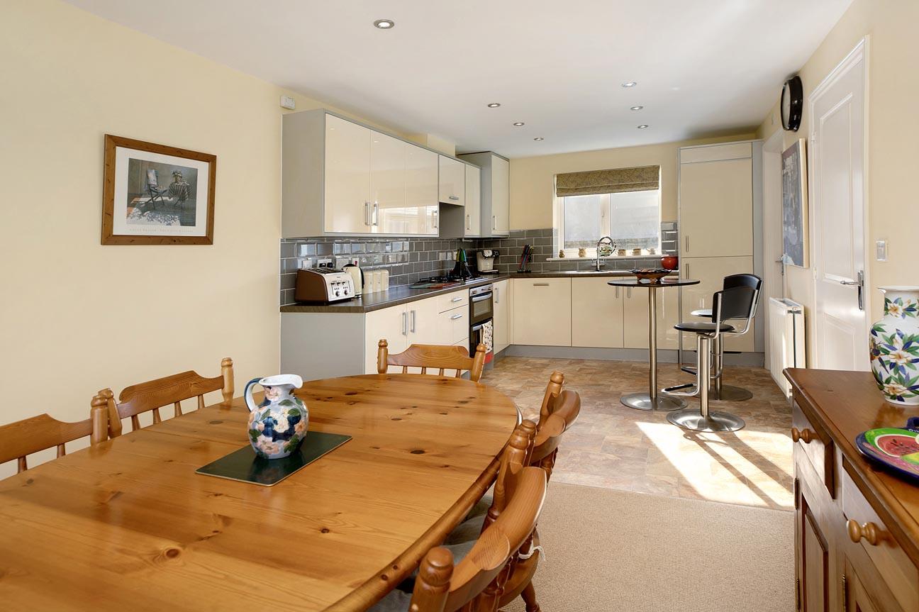 Accommodation: The property offers immaculate and well proportioned accommodation with uPVC double glazed windows and gas central heating with radiators to all principal rooms. Entry to the property is in to the reception hall where there is a cloakroom with white suite. The sitting room is a bright, double aspect room with a pleasant outlook to the front and French doors opening on to the rear garden. The kitchen/dining room is also double aspect with an outlook to the front and rear and is fitted with a comprehensive range of units and includes a built in electric double and gas hob and integrated dishwasher and fridge freezer. Off the kitchen is a useful utility with plumbing for a washing machine and a door to the rear garden.
