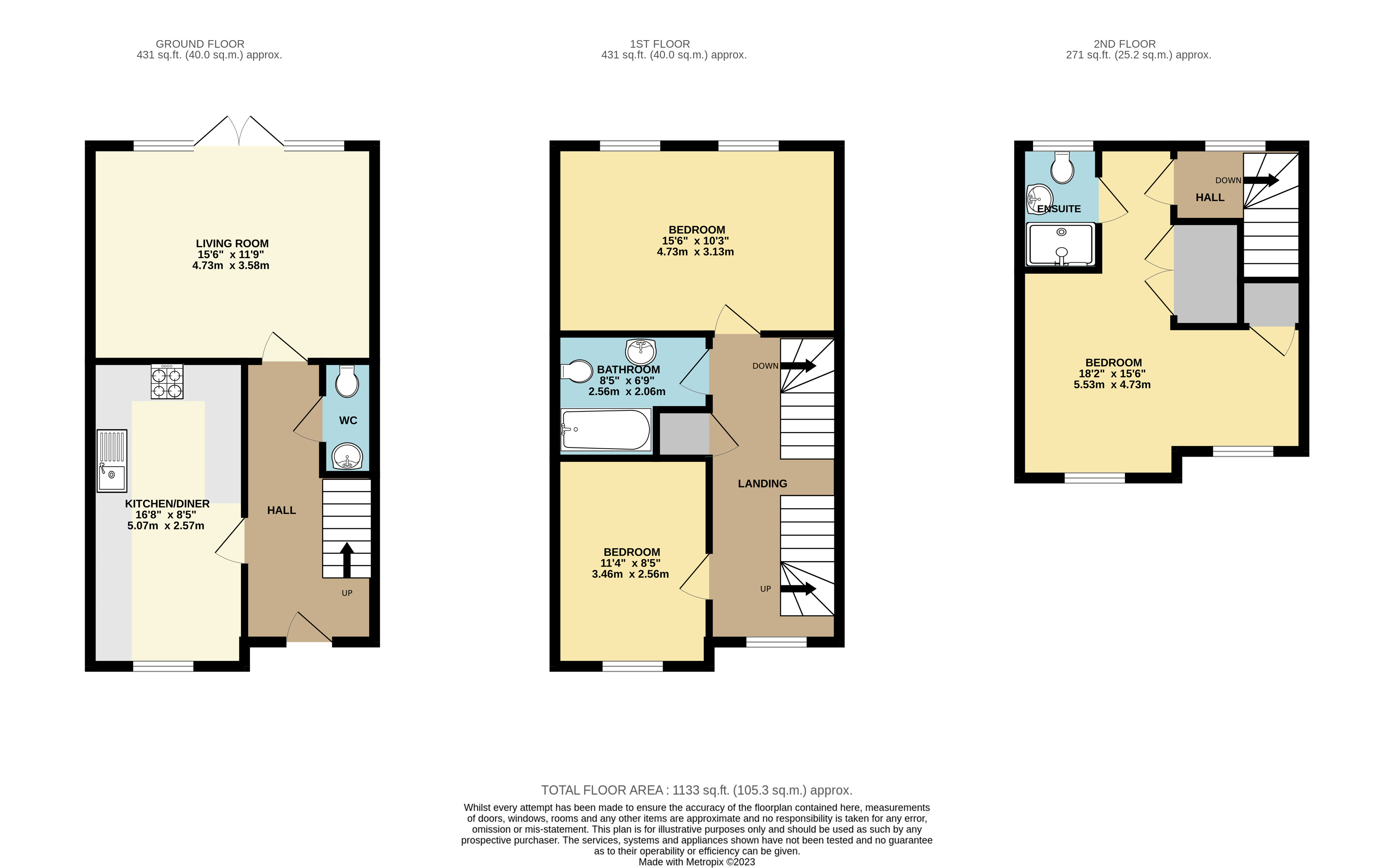 Brief internal accommodation comprises of an entrance hallway, kitchen/diner, guest cloakroom and living room. The first floor offers two double bedrooms and family bathroom. The second floor provides the master bedroom and en-suite. Externally the property boasts a private rear garden, driveway and car port.