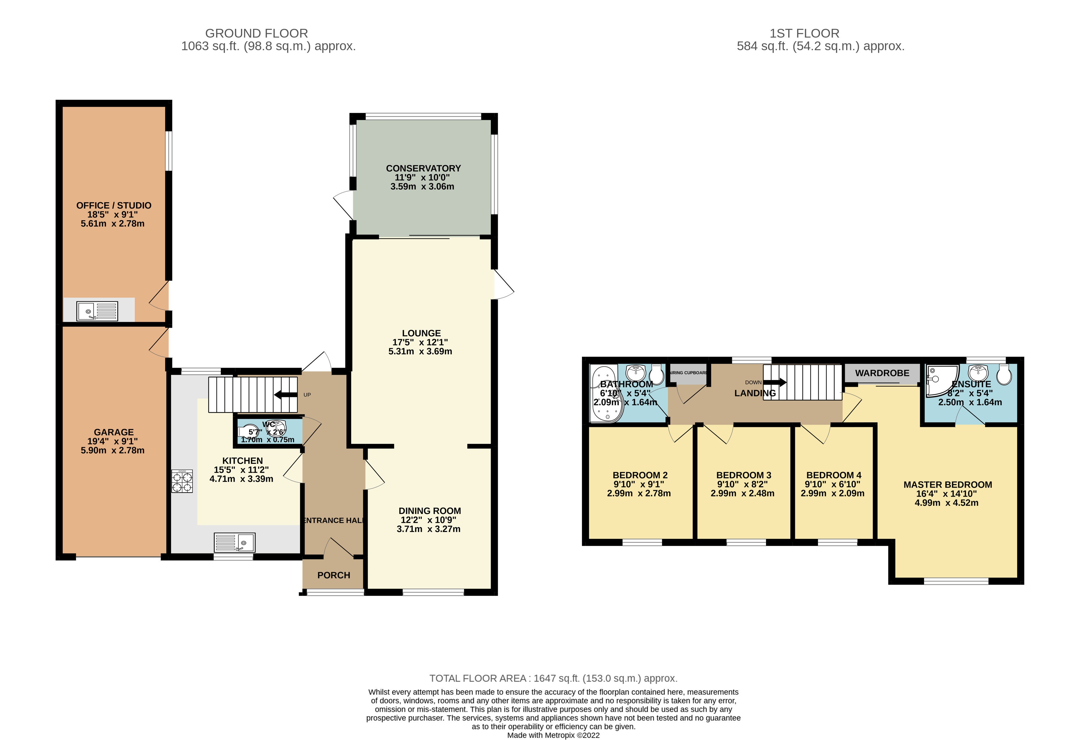 Brief internal accommodation comprises an entrance hallway, guest cloakroom, fitted kitchen/breakfast room, dining room through into the living room and conservatory. The first floor offers four generously sized and well-proportioned bedrooms, family bathroom and en-suite to the master. Externally the property boasts an integral garage, outside studio/office, large private rear garden and a driveway for three vehicles.