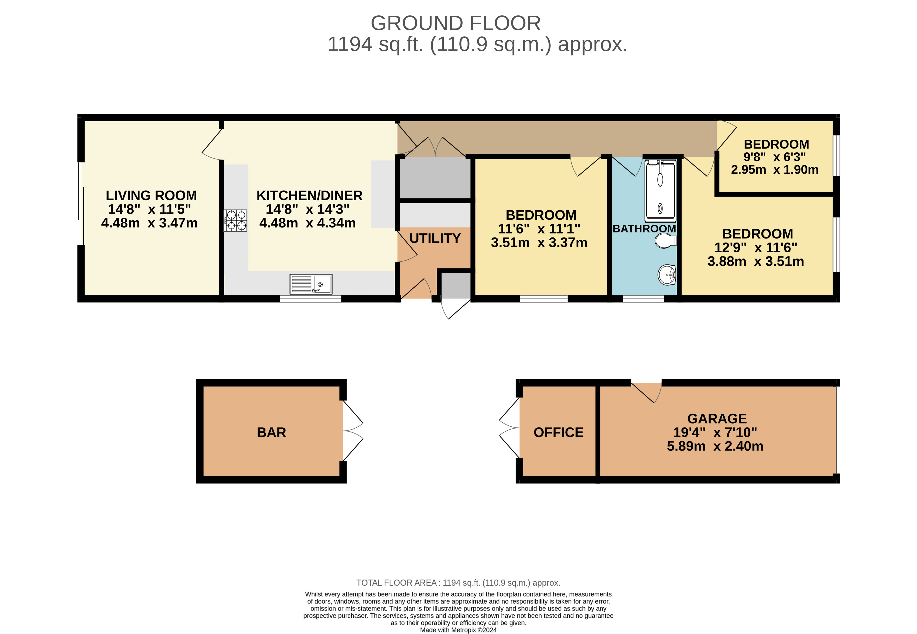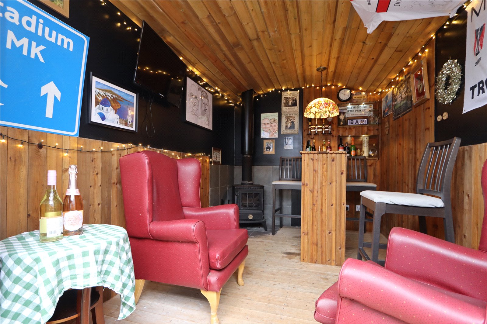 Brief accommodation comprises an inner entrance hall, utility room, fitted kitchen/diner, living room, three bedrooms and family bathroom. Externally the property boasts a garage, office, bar and stunning landscaped rear garden.
