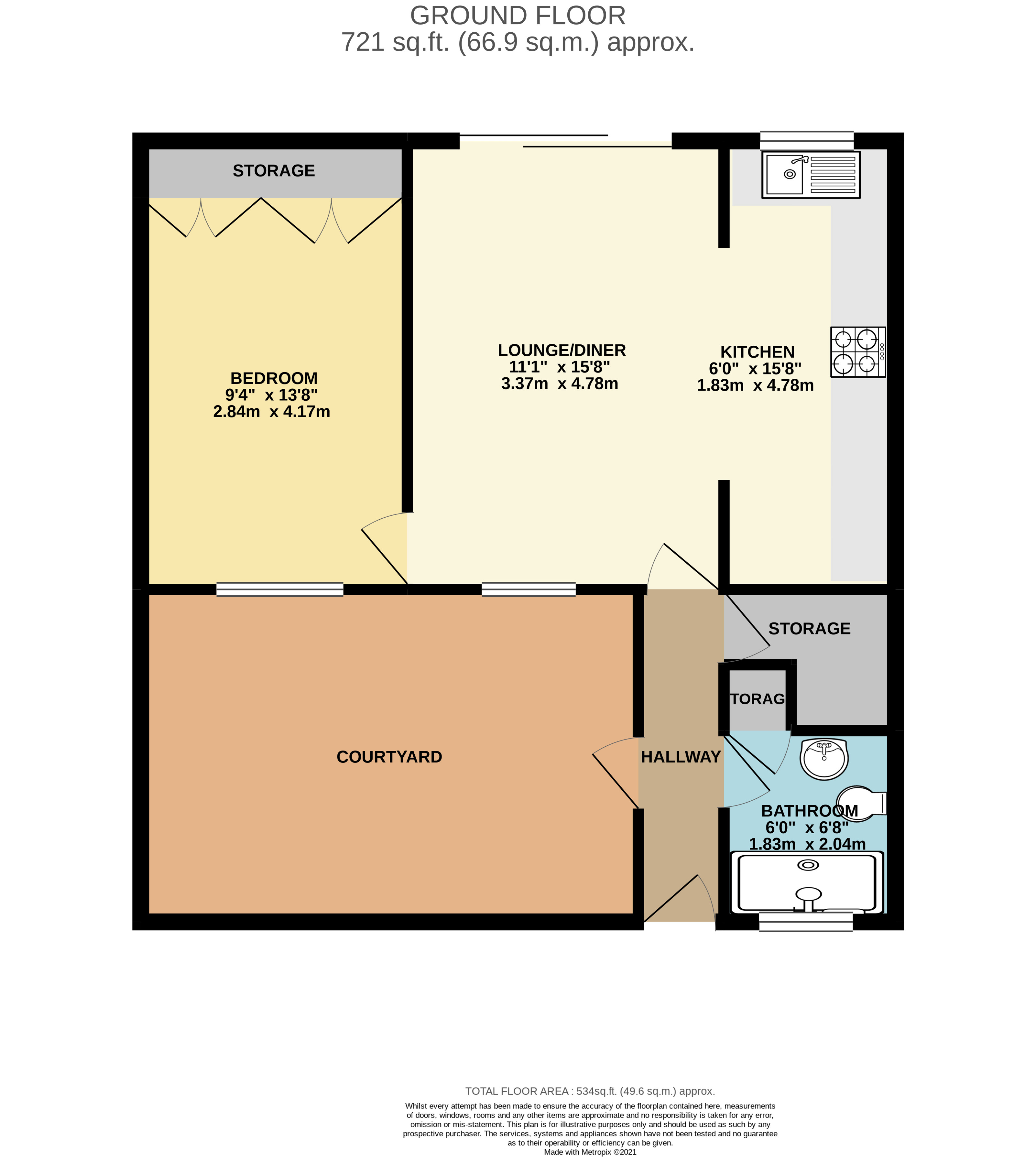 Brief internal accommodation comprises an entrance hallway, refitted bathroom with large walk in shower, large storage cupboard. open planned lounge/diner with refitted kitchen and a spacious double bedroom with fitted wardrobes. Externally the property offers a private courtyard garden to the front and an easy to manage garden to the rear. There is also a driveway and single garage.