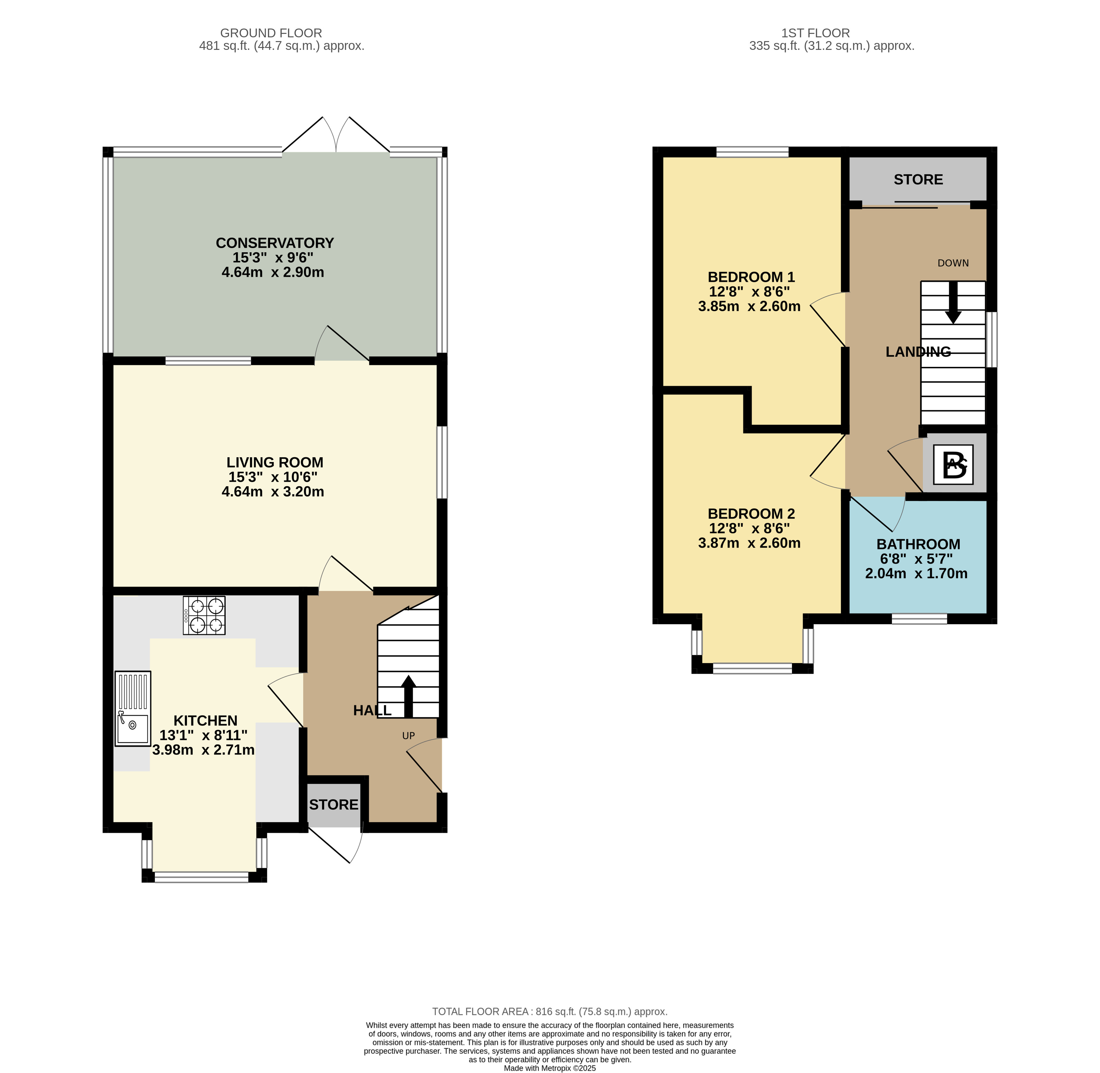Upstairs, you'll find two generously sized bedrooms, a family bathroom, and two storage cupboards. The master bedroom offers ample space for wardrobes and a large bed, while the second bedroom is currently being used as a dressing room/office but can comfortably accommodate a bed and wardrobes. The family bathroom is equipped with a shower over the bath, a sink, and a toilet.