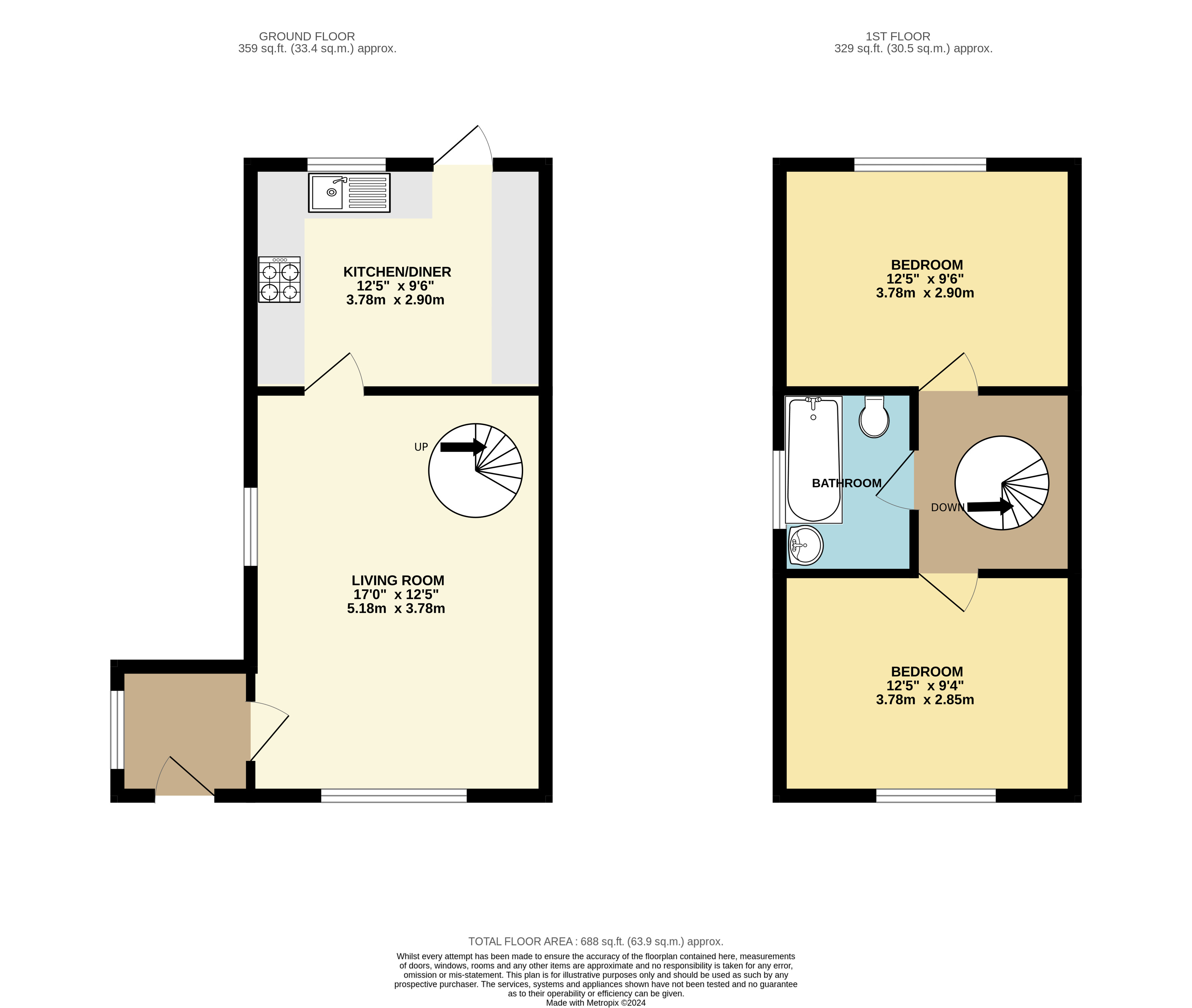 Brief internal accommodation comprises an entrance porch, living room and kitchen/diner. The first floor offers two double bedrooms and a family bathroom. Externally there are front and rear gardens and a driveway.