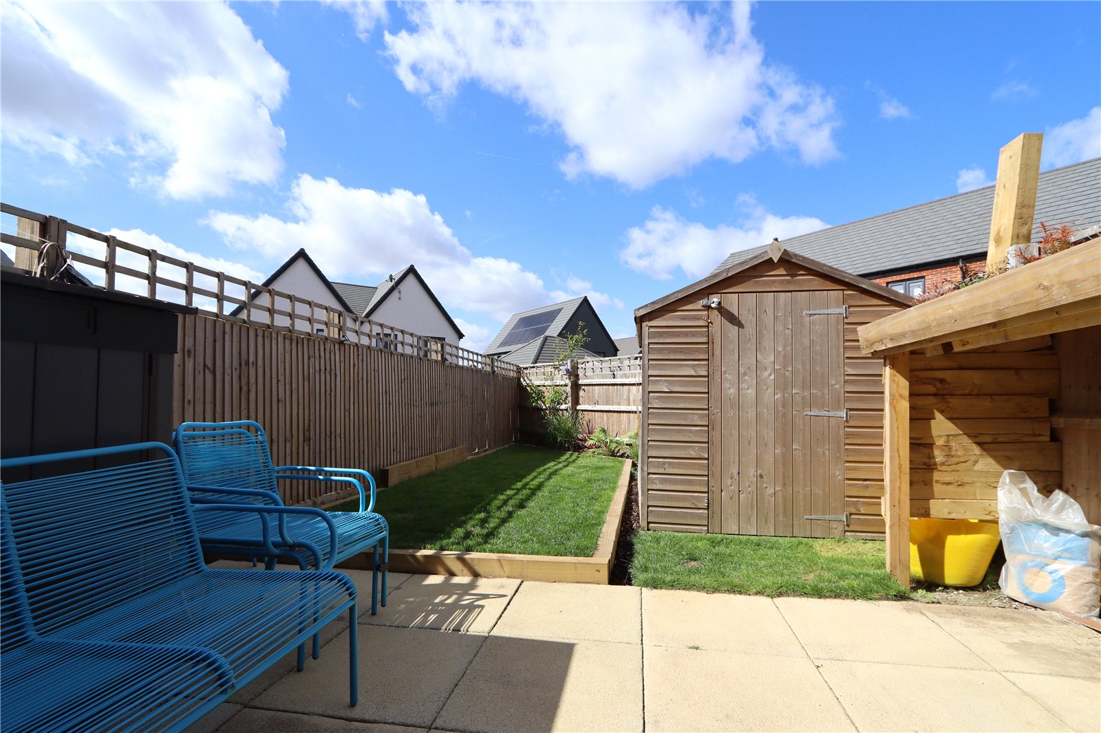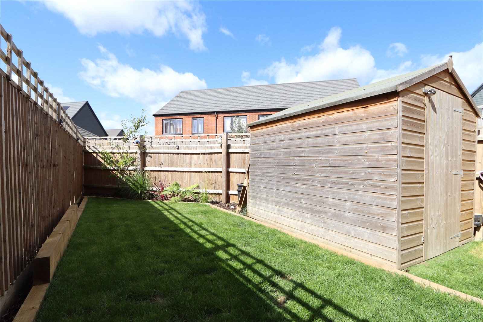 To the front of the property there is a garden behind a driveway with offroad parking for two vehicles and an electric 22k/w car charger. The rear garden is enclosed by timber fencing and is mainly laid to lawn with a paved patio seating area and sleeper planter beds. There is a timber garden shed for storage and side access.