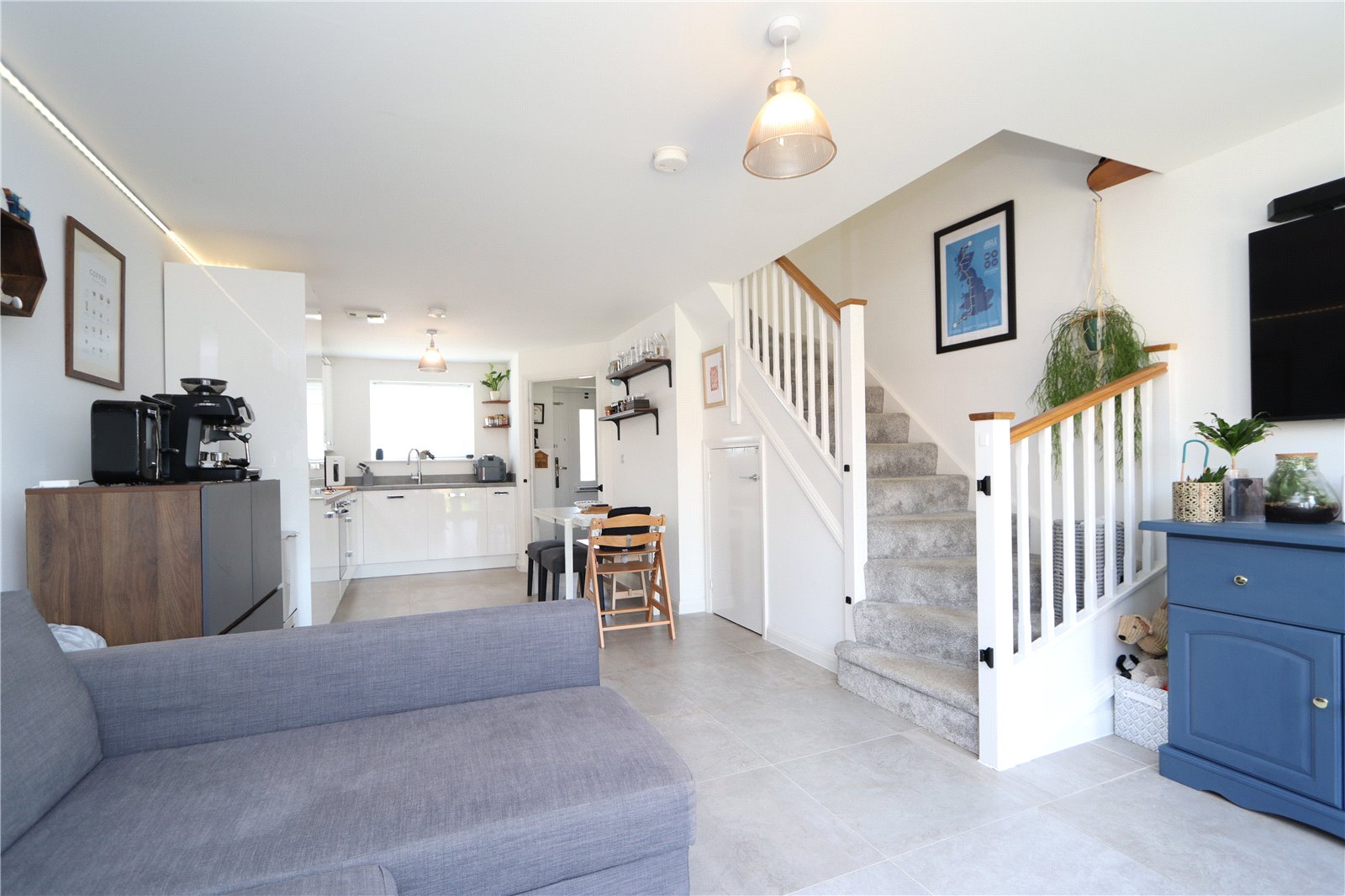 Brief internal ground floor accommodation comprises an entrance lobby, guest cloakroom, and an open plan sitting/kitchen/dining room. On the first floor there are two double bedrooms overlooking the front and rear gardens and a modern family bathroom with a three-piece white suite featuring a bath with a shower fitting above.