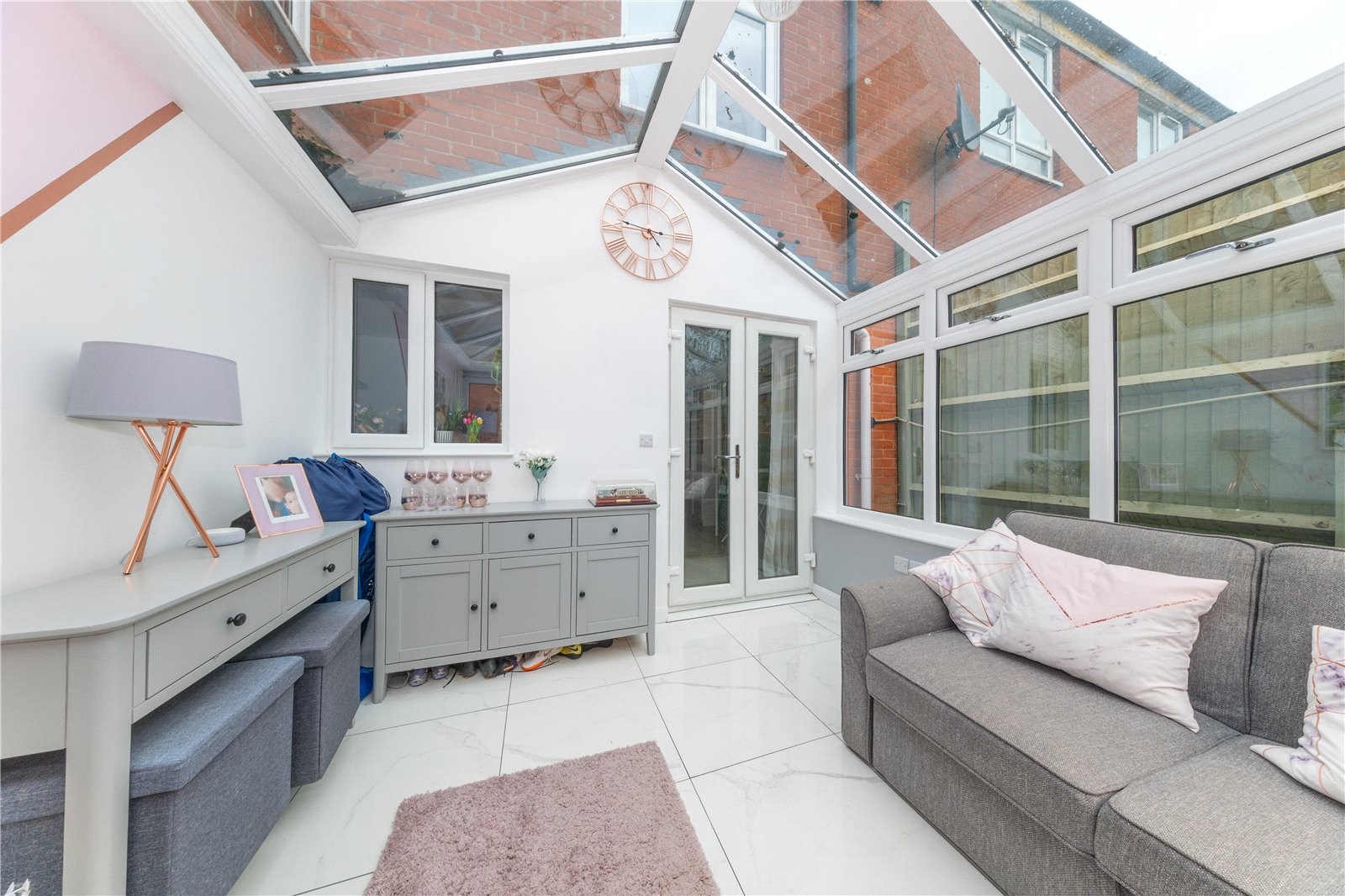 From the kitchen/diner there is access to the conservatory, a bright and versatile additional reception room which enjoys views over the south facing rear garden and features doors opening out onto the patio, creating a fantastic space for indoor-outdoor living and entertaining. The ground floor accommodation is completed by the sitting room, an impressive and particularly spacious main living area offering plenty of room for lounge furniture and benefiting from excellent natural light, creating a comfortable space for relaxing with family or hosting guests.