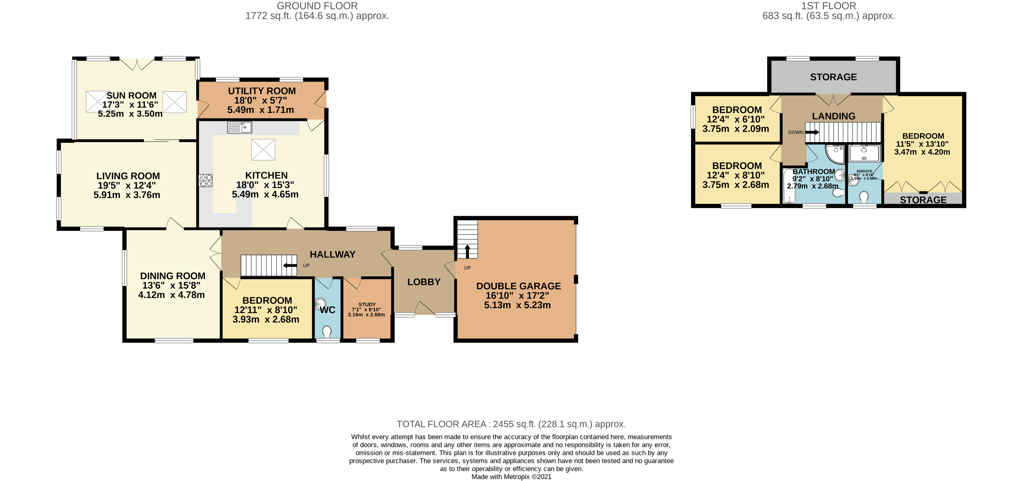 Brief internal accommodation on the ground floor comprises an entrance lobby, entrance hallway, guest cloakroom, bedroom 4, dual aspect dining room, large living room, beautiful sun room, kitchen/breakfast room, utility room and study/5th bedroom. To the first floor there are a further three double bedrooms, en-suite to the master, four piece family bathroom and ample eave storage. Externally the property boasts a double garage which could be easily converted, driveway for several vehicles and a very well designed and stunning wrap around garden.