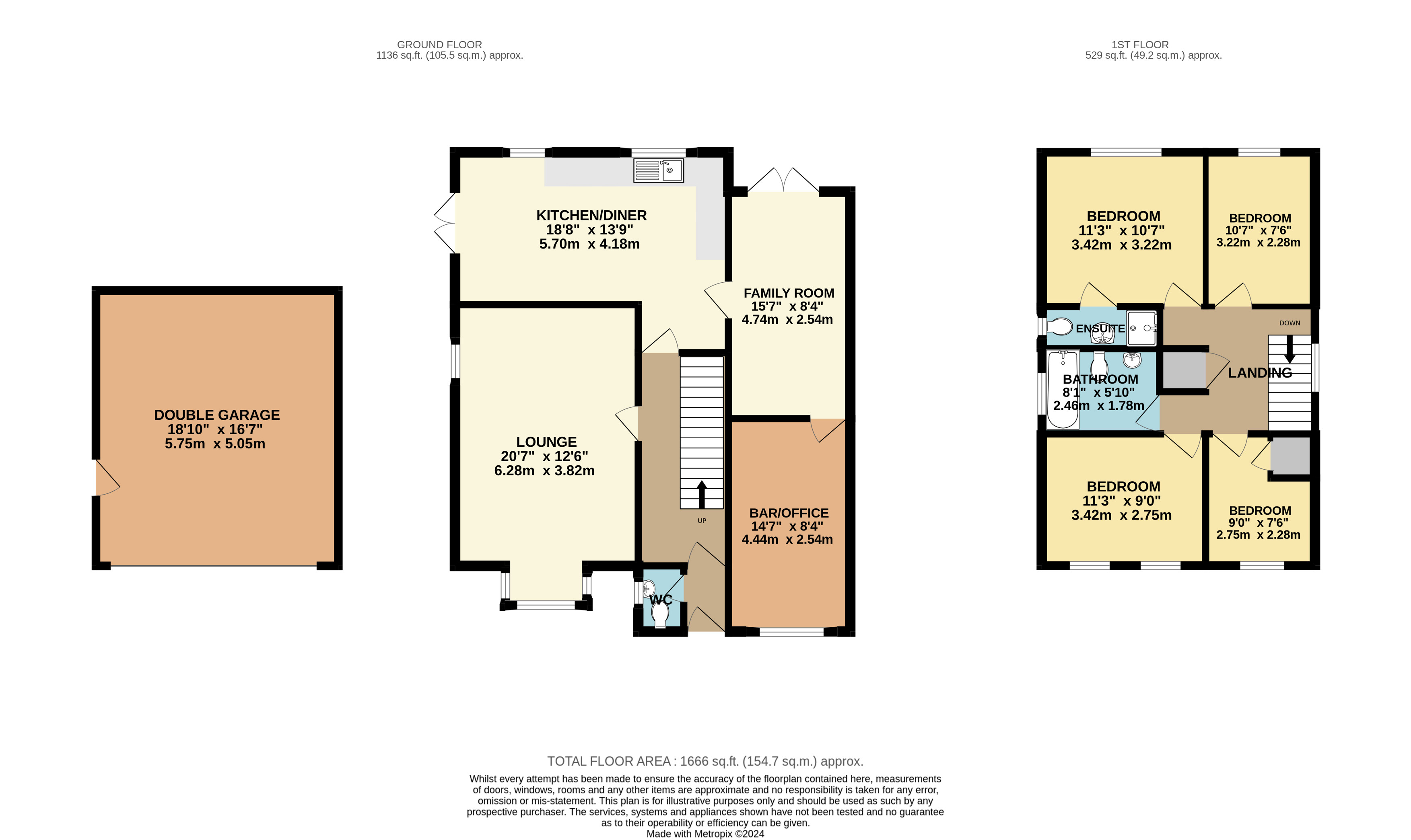 Brief internal accommodation comprises an entrance porch, hallway and guest cloakroom, dual aspect living room, opened up kitchen/diner, family room and bar/home office. The first floor provides four bedrooms, en-suite and family bathroom. Externally the property boasts a generous rear garden, large driveway and new double garage.