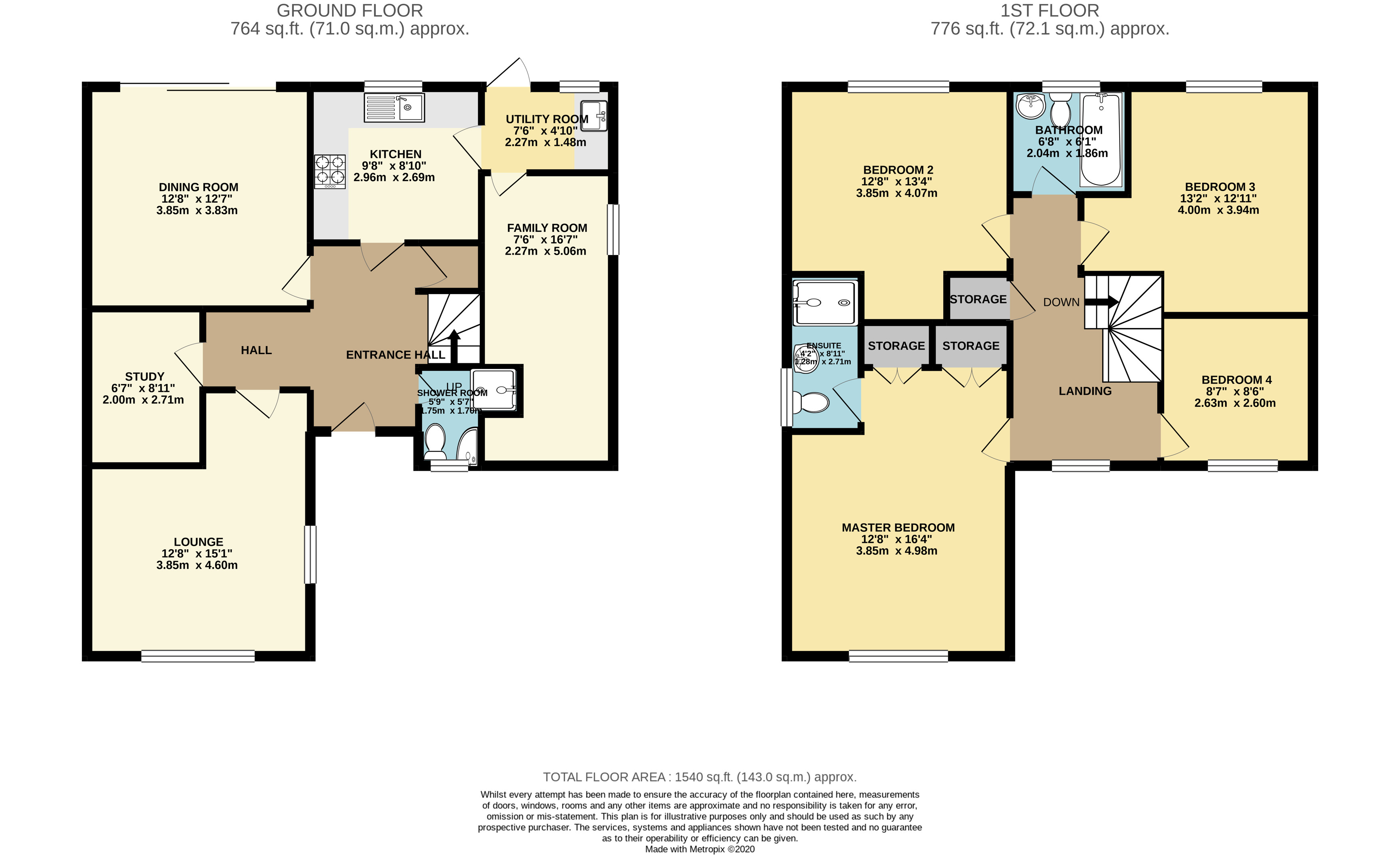 Brief internal accommodation comprises an entrance hallway, refitted downstairs shower, living room, study, dining room, modern kitchen, utility room and converted garage providing the 5th bedroom or family room. To the first floor there are three double bedrooms, a generous sized single, en-suite and refitted family bathroom. Externally there is a driveway for two vehicles and a large private rear garden.
