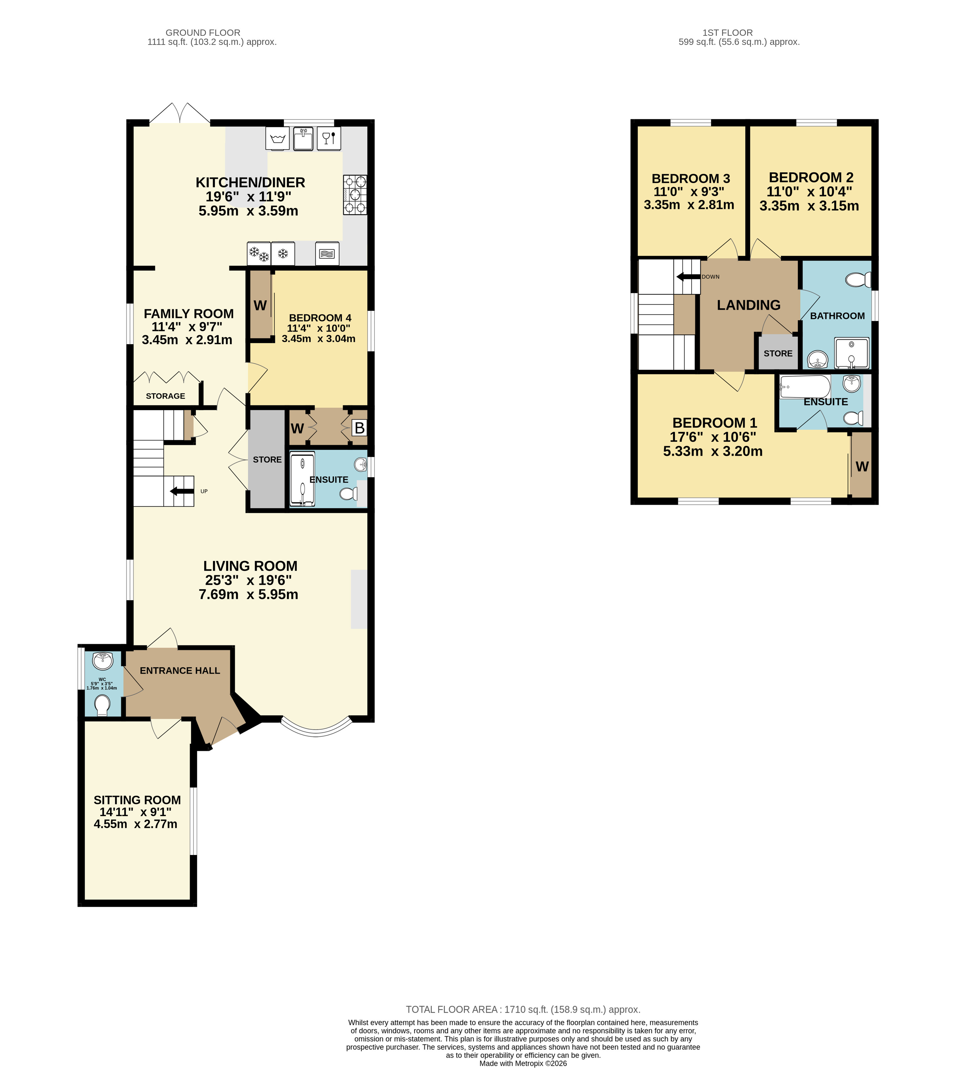 A brilliant addition to this home is the ground floor bedroom, fitted with wardrobes and a private en-suite shower room, making it ideal for guests, multi-generational living, or those requiring ground-floor accommodation.