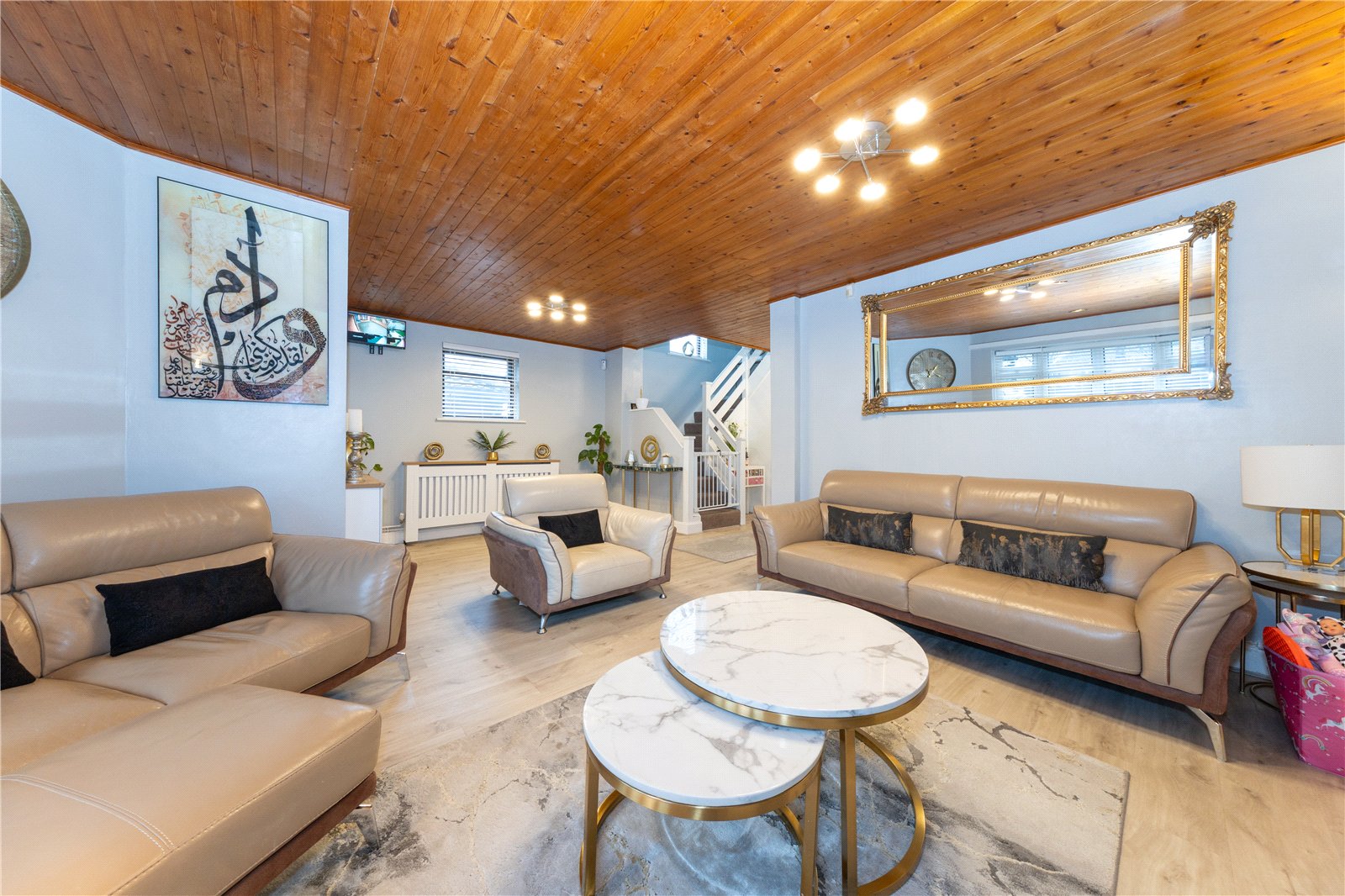 The centrepiece of the property is the impressive 25ft living room, a bright and spacious reception room offering excellent flexibility for both family life and entertaining. To the rear of the living room is a large double-door storage cupboard, with further storage under the stairs. Off the living room is a family room, currently set up as a playroom, which opens into the extended open-plan kitchen/diner.