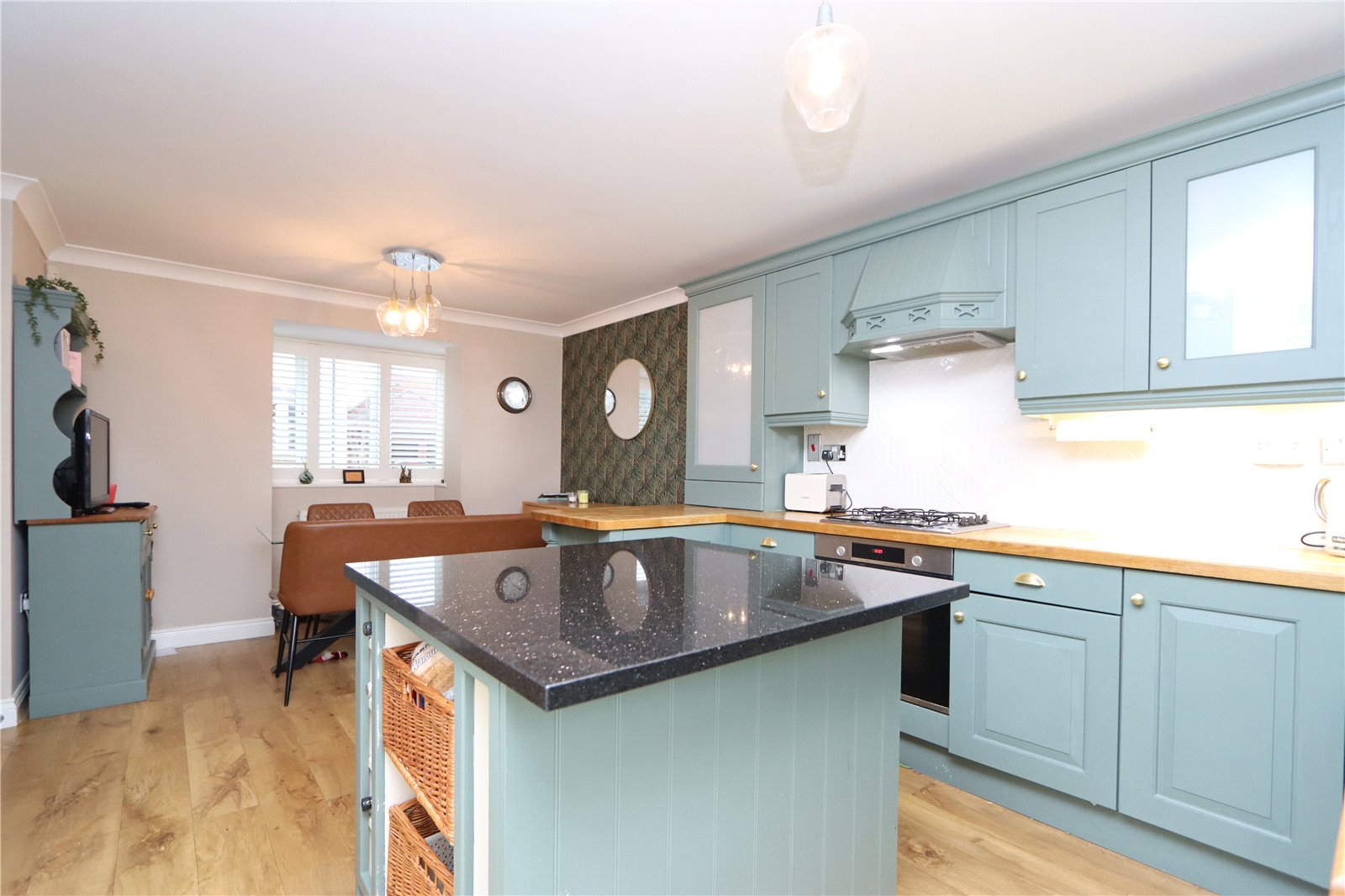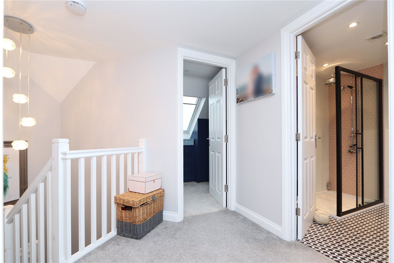 Brief internal accommodation comprises an entrance lobby, guest cloakroom, dual aspect living room and a comprehensive kitchen/diner with feature island complete with granite and oak work tops. The first floor offers three bedrooms, family bathroom and utility room. The second floor provides a large dual aspect master bedroom with unspoilt views, dressing room and modern bathroom. Externally the property boasts a landscaped rear garden, driveway and garage.