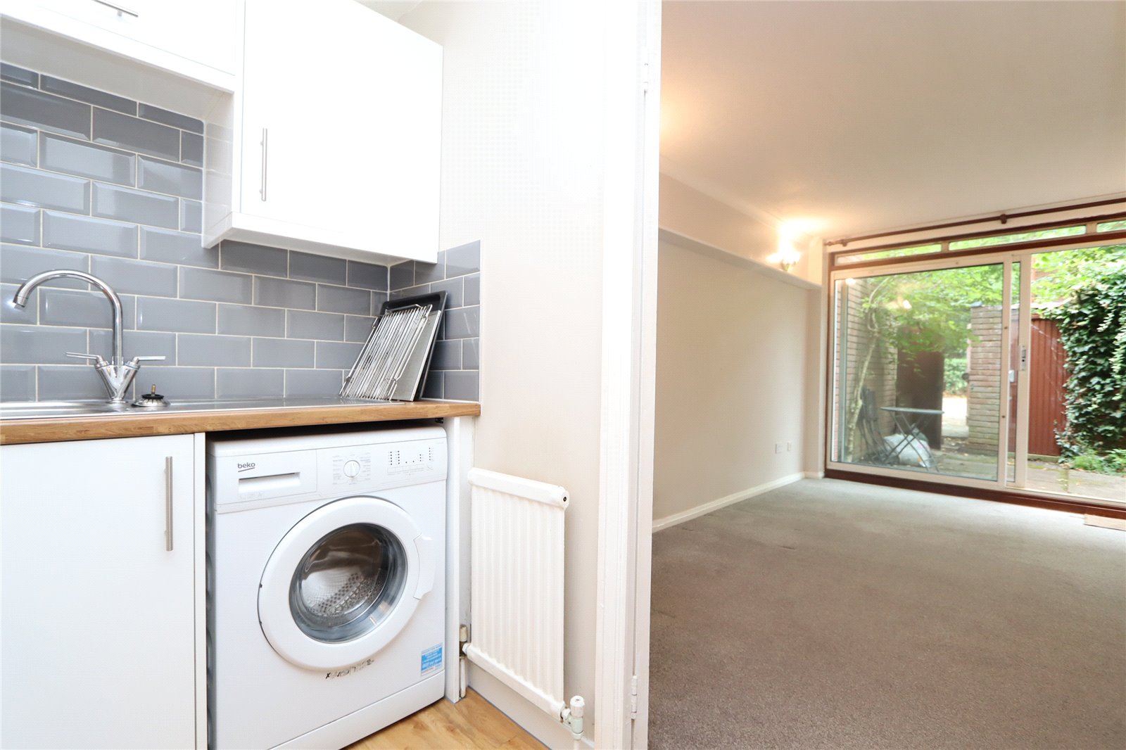 Brief internal accommodation comprises a communal entrance, entrance hallway with two storage cupboards, a refitted bathroom, double bedroom with built in wardrobes, fully refitted kitchen and a lounge/diner with sliding doors to its own private rear garden with additional storage and rear access. Externally the property boasts allocated parking and a garage.