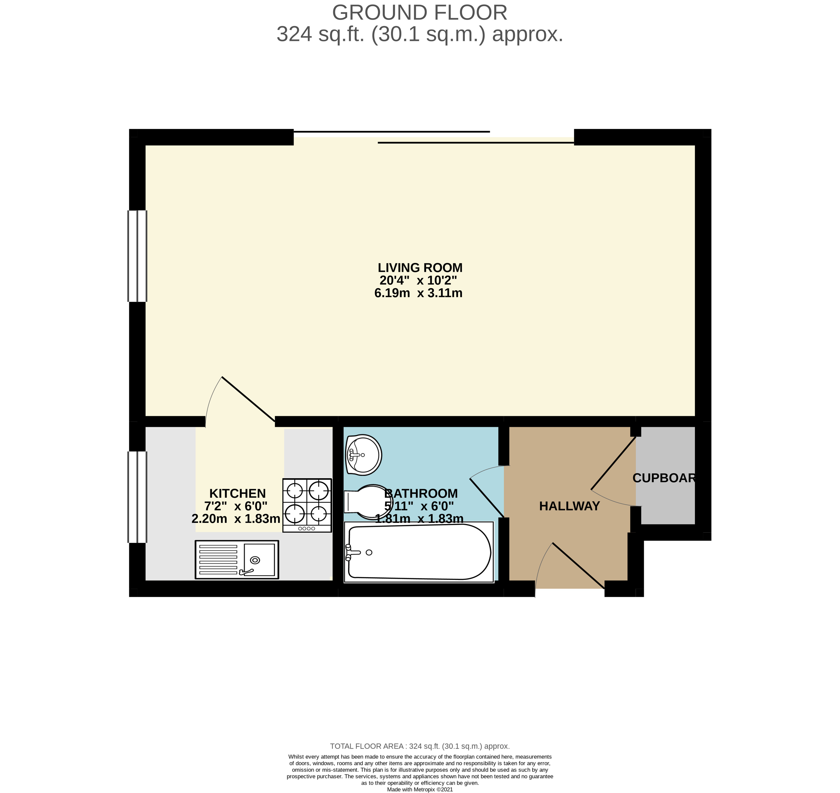 This property in brief comprises; an entrance hall comprising a large cupboard and access to; a large open light and airy 20’ living space, full sized bathroom suite and kitchen internally. Externally there are parking facilities.