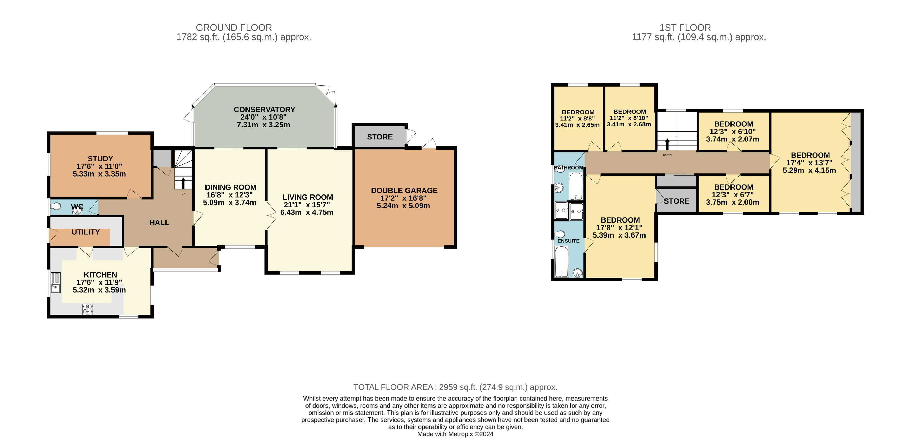 Brief internal accommodation comprises an entrance porch, spacious lobby, guest cloakroom, study, kitchen/breakfast room, utility, dining room, living room and conservatory. The first floor offers six bedrooms, four piece bathroom and four piece en-suite. Externally the property boasts a generous gated driveway, double garage with electric doors and a beautifully maintained wrap around garden.