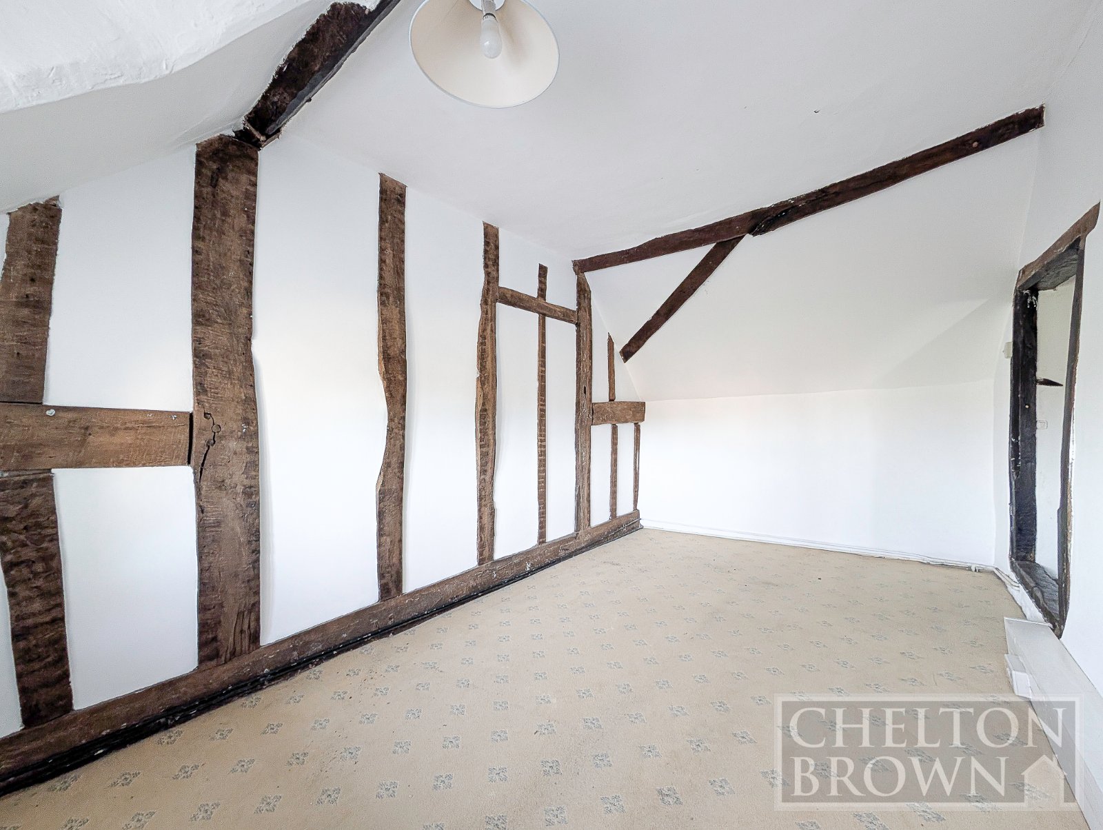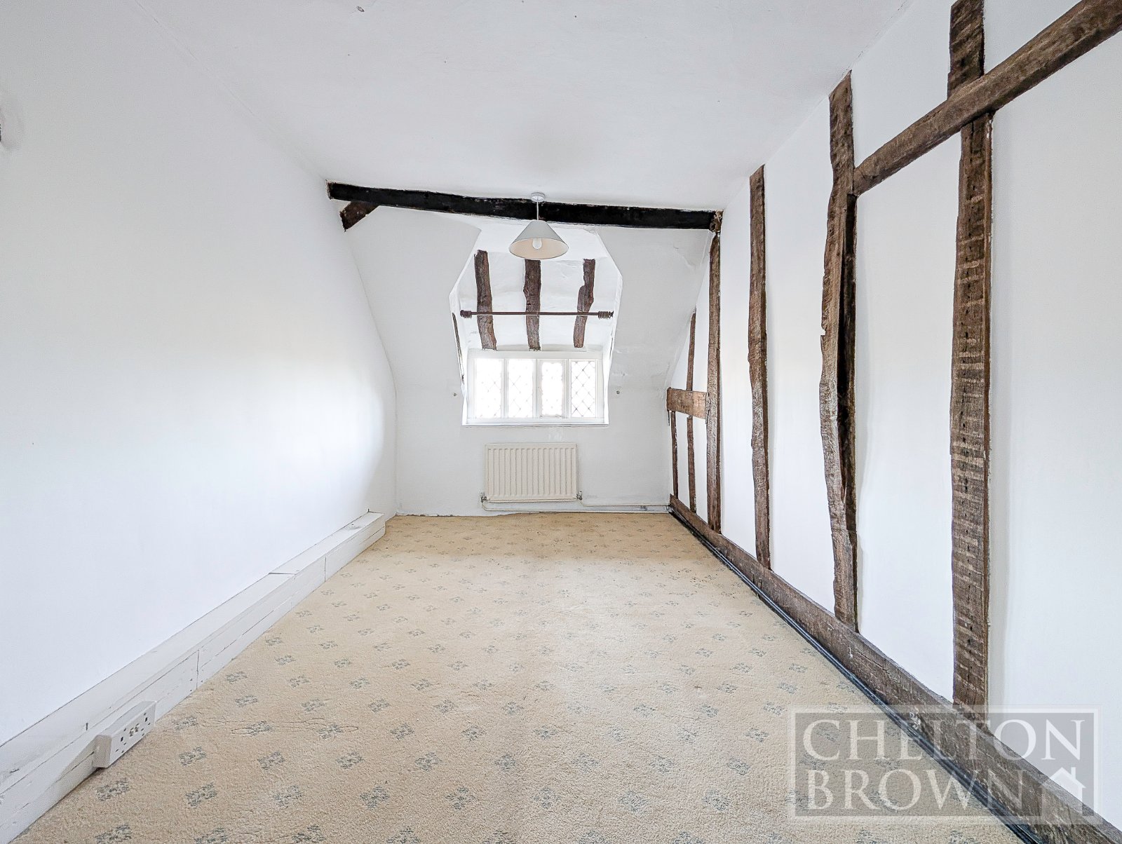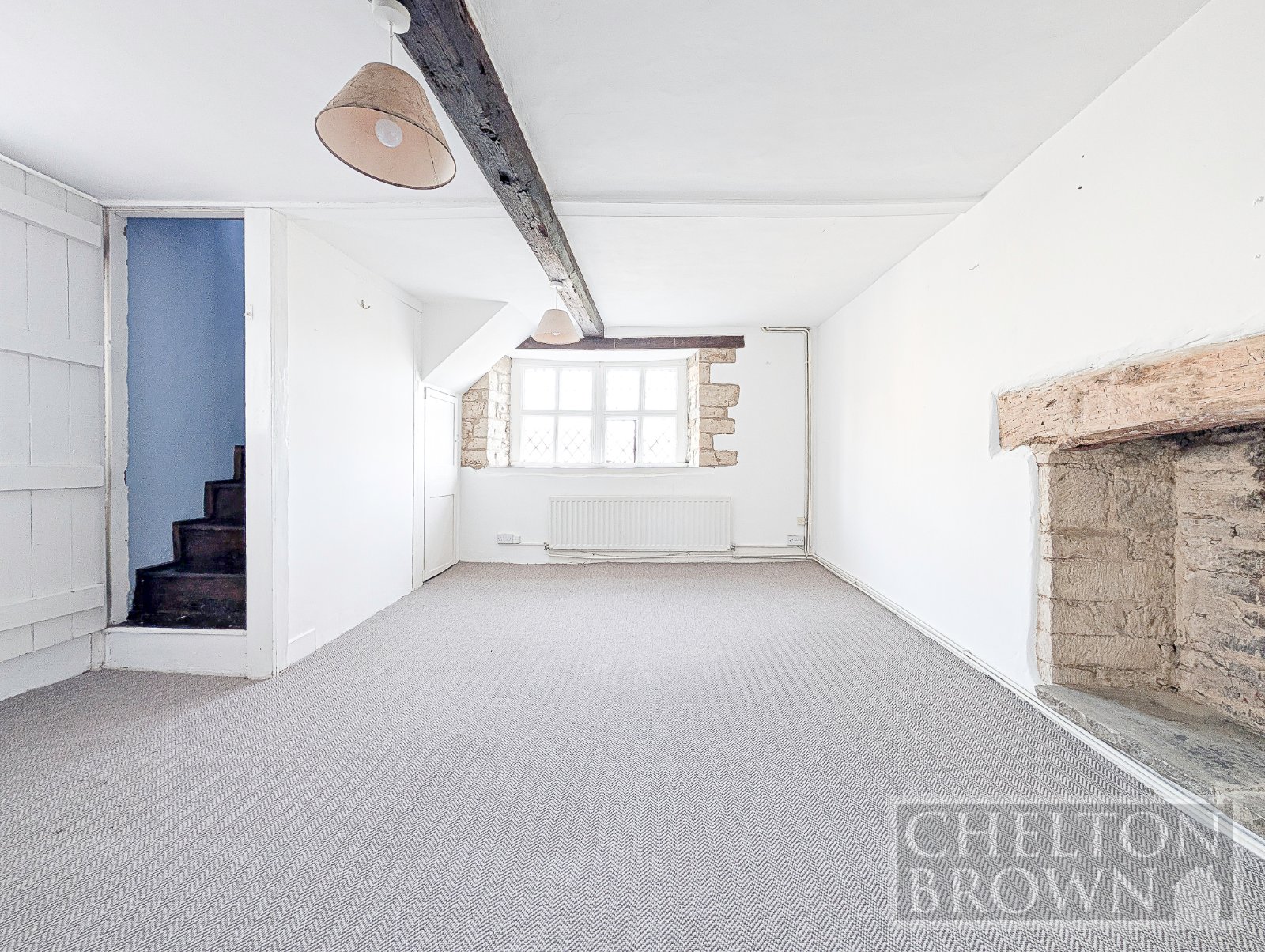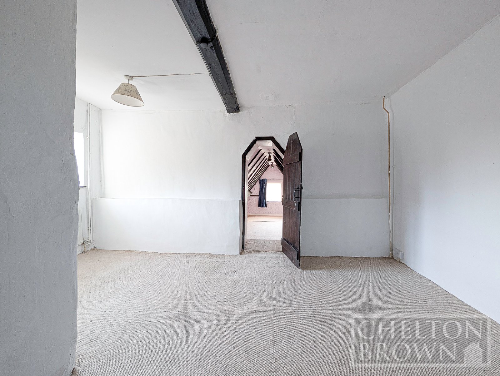 The principal bedroom sits at the front of the property, enjoying views over the field opposite and featuring a striking sandstone fireplace. Concealed behind one of the bedroom cupboards is a hidden staircase a delightful surprise leading up to a substantial attic room. Measuring over 11 metres in length, this versatile space offers enormous potential for a variety of uses, subject to the necessary consents.