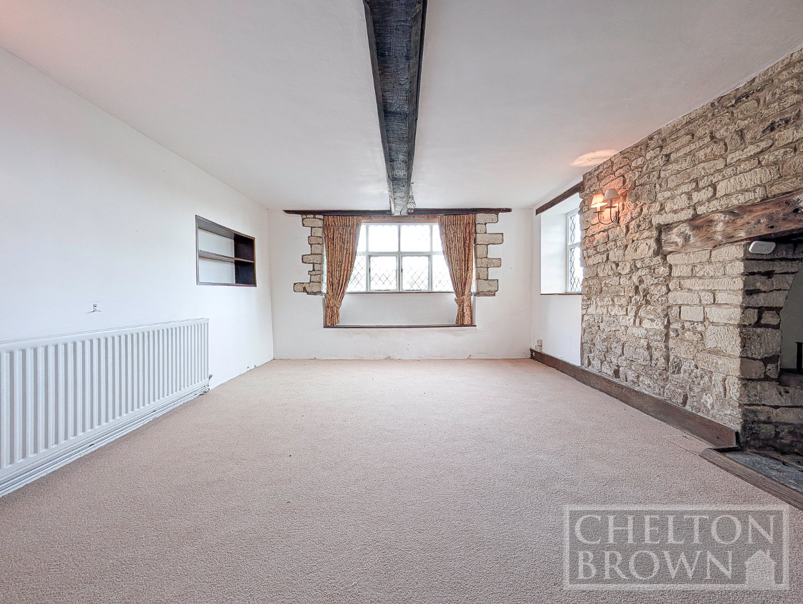 Off the hallway lies the second reception room and the kitchen. The second reception room is an impressive and spacious area, boasting a large window framing picturesque countryside views and a further inglenook fireplace, this time with an open fire at its heart perfect for cosy evenings.