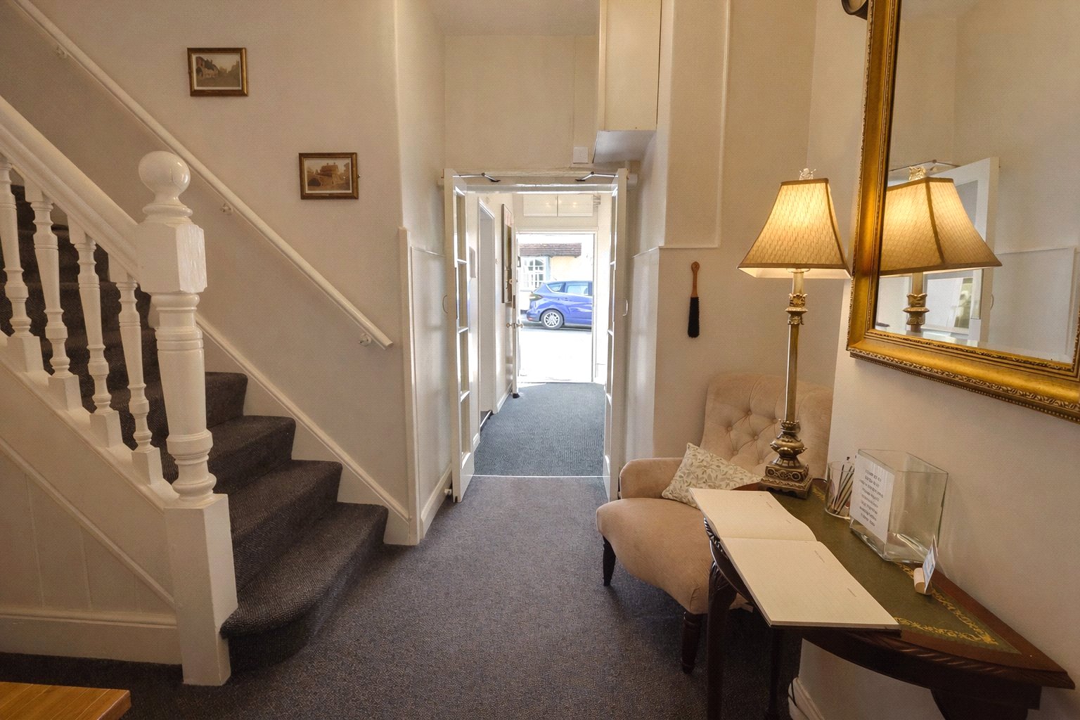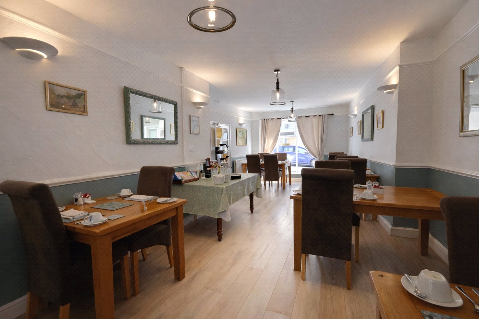 Arranged over two floors the accommodation in brief comprises; entrance lobby with double doors opening into a welcoming reception hall with cloakroom and staircase rising to first floor. A charming guest sitting room with feature fireplace and exposed timber flooring overlooks the front through large picture windows as does the generous dining room and a formal part timber panelled guest lounge with open fireplace completes the ground floor guest accommodation.