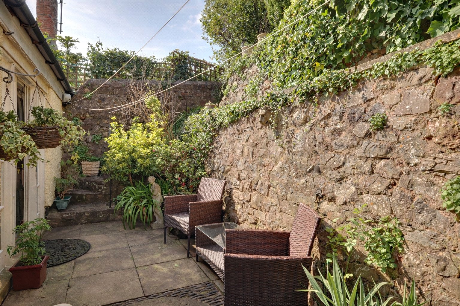 The property is set back from the cobbled pavement with an interesting rear garden with pathways between lawn, flower and shrub beds, patio and views towards woodland. Whilst there is no parking at the property, there is on street parking on the road outside and there are the usual public car parks in the village.