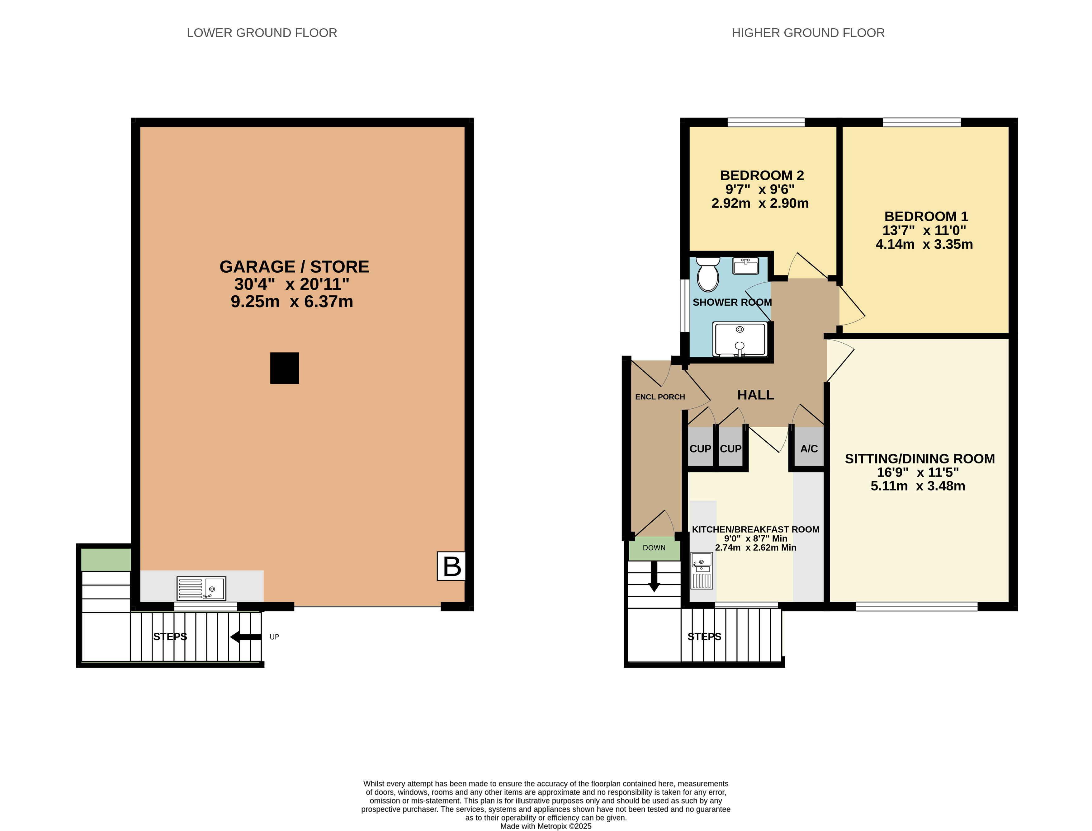 The large integral garage has remote up and over door, electric light and power, stainless steel single drainer sink unit and plumbing for washing machine.