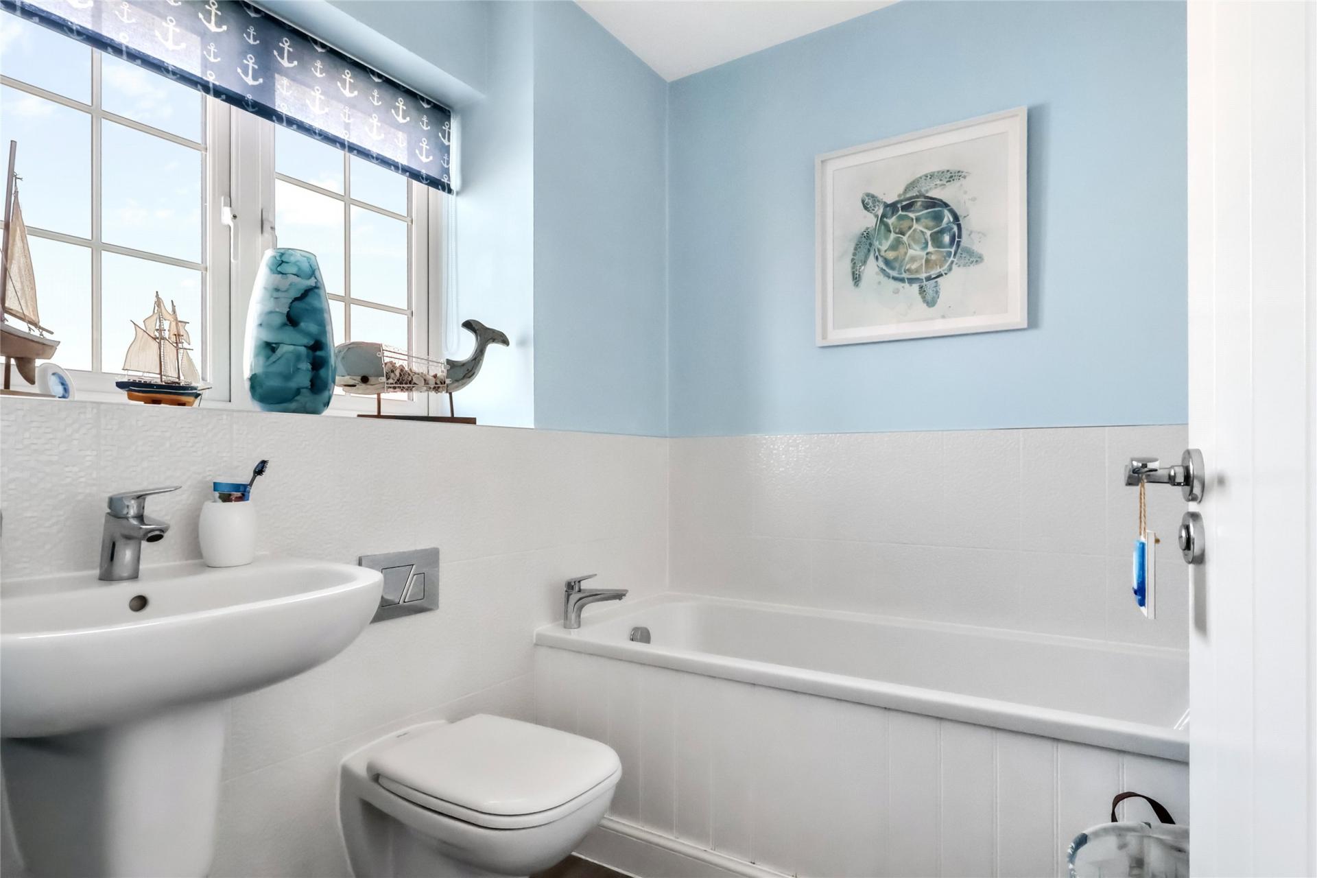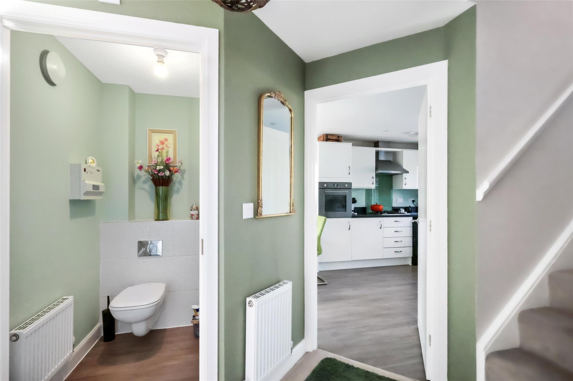 Arranged over two floors the accommodation includes: A welcoming reception hall with cloakroom fitted with a two piece white and chrome suite. A bright triple aspect sitting room has patio doors opening onto the terrace and rear garden. A stylish double-aspect kitchen/dining room is fitted with a range of modern base and wall units with working surfaces, stainless steel one and a half bowl sink unit with mixer tap, integrated gas hob with extractor hood and glass splashback, eye level electric oven, plumbing for washing machine and double glazed door to garden.