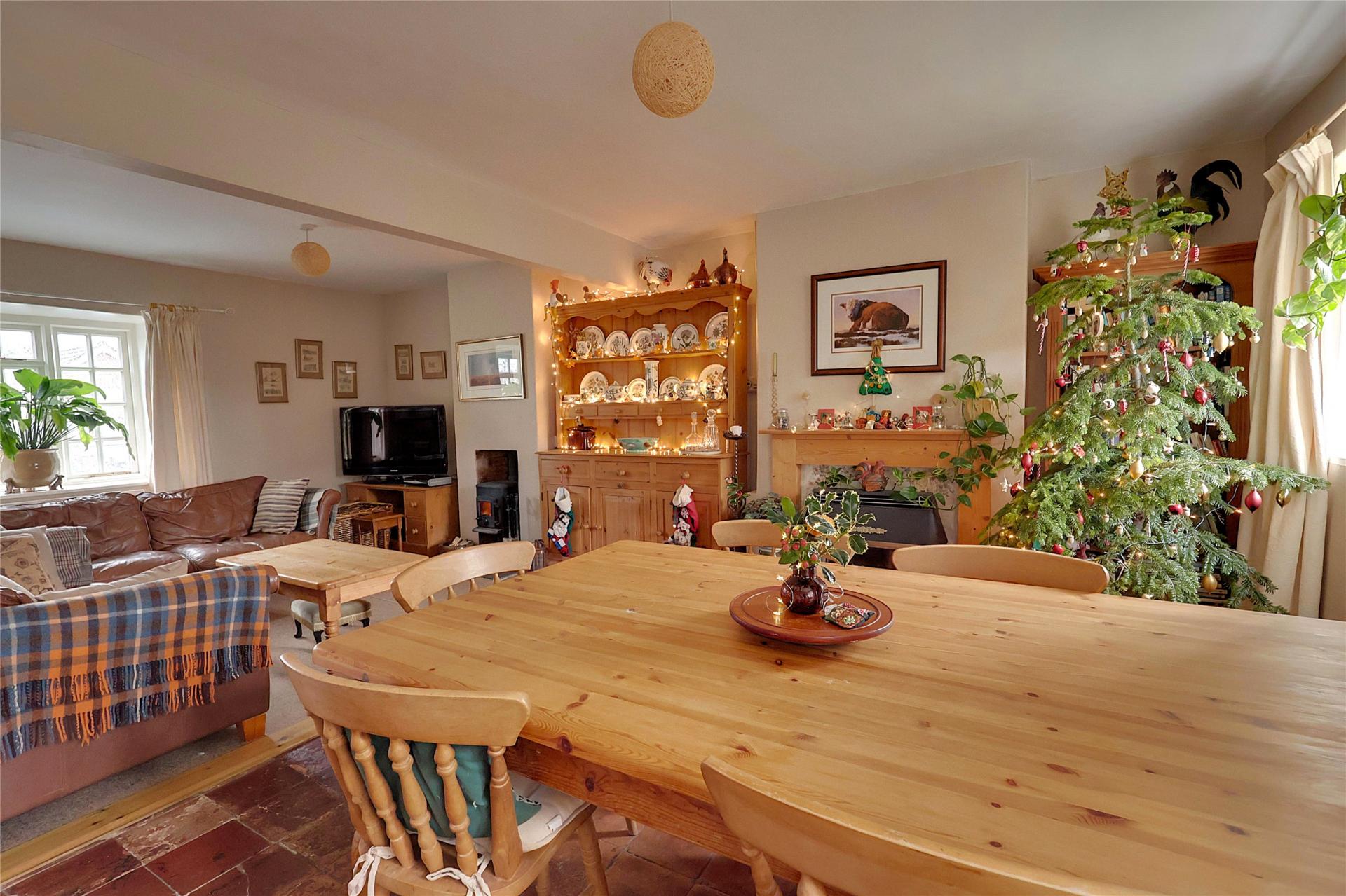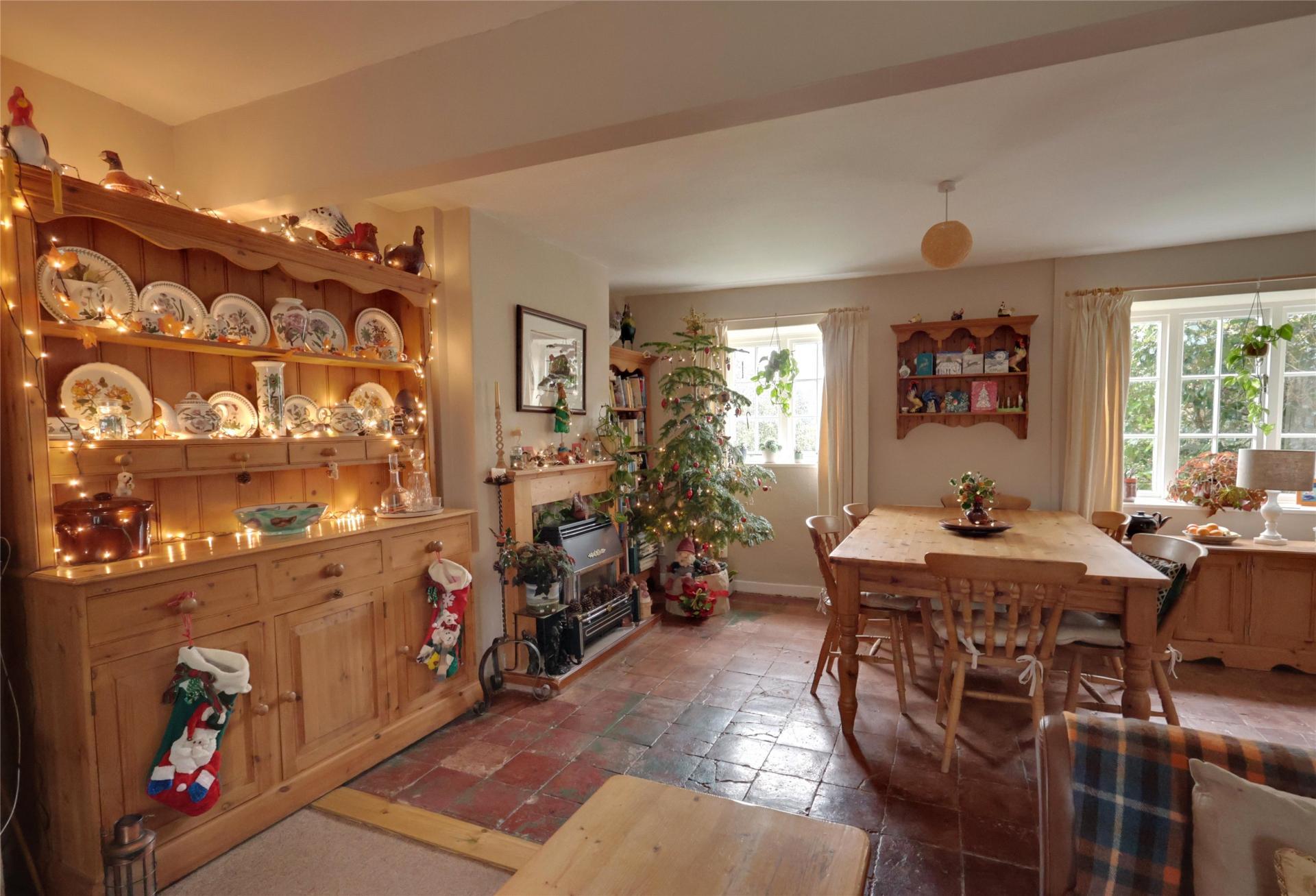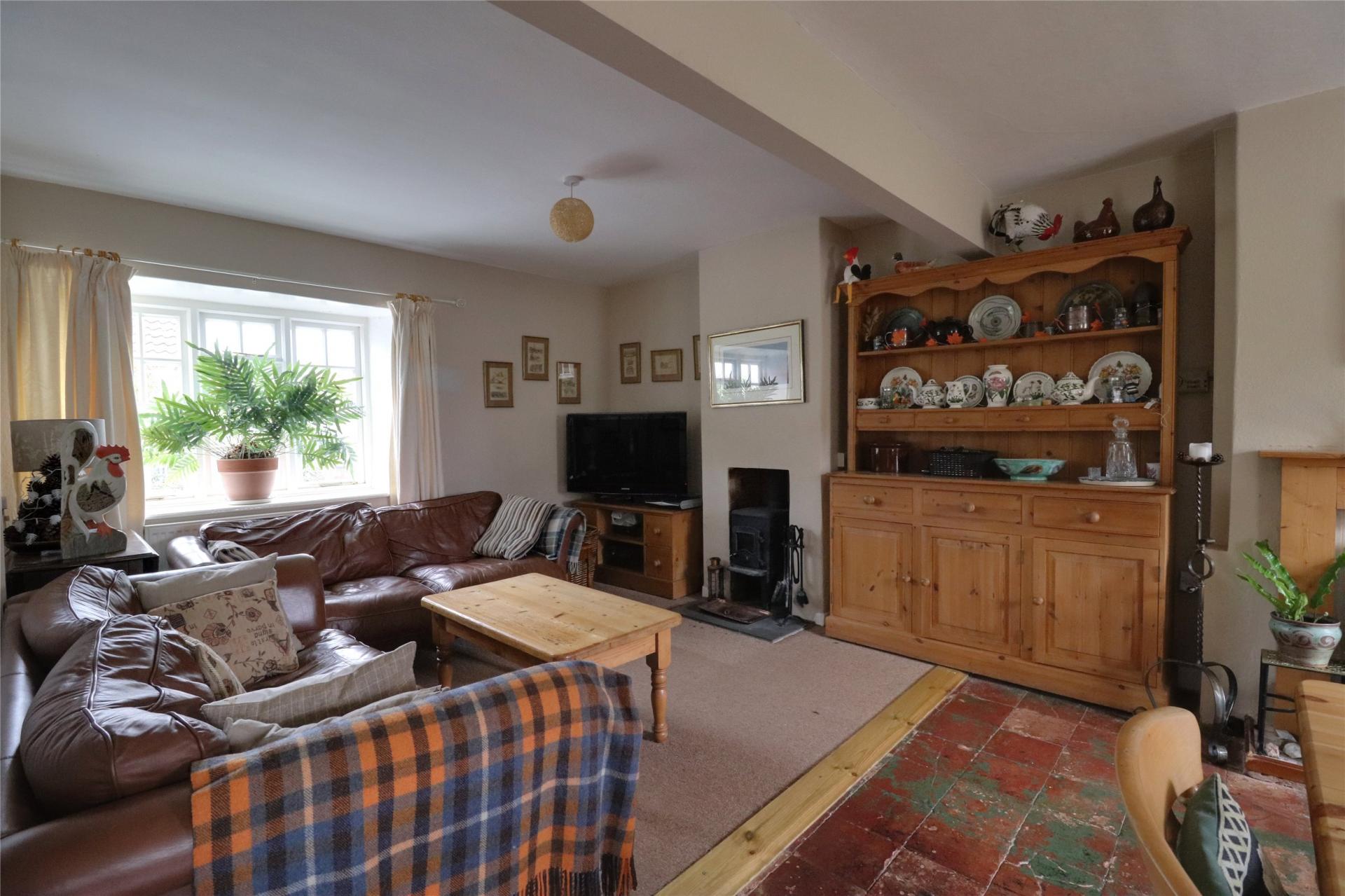 Arranged over two floors the accommodation in brief comprises; reception hall, L-shaped double aspect sitting/dining room with woodburner and gas fire with back boiler in the dining area, the room opens into a modern fitted kitchen with cream coloured base and wall units, beech working surfaces and tiled flooring, staying on the ground floor off an inner hall is a ground floor tiled bathroom fitted with a three piece white and chrome suite with shower over the bath and tiled floor. From the inner hall a door gives access to a useful enclosed area with doors to both the front and rear, WC with high level flush, a fuel/log store and utility room with stainless steel sink unit with cold water tap and plumbing for washing machine.