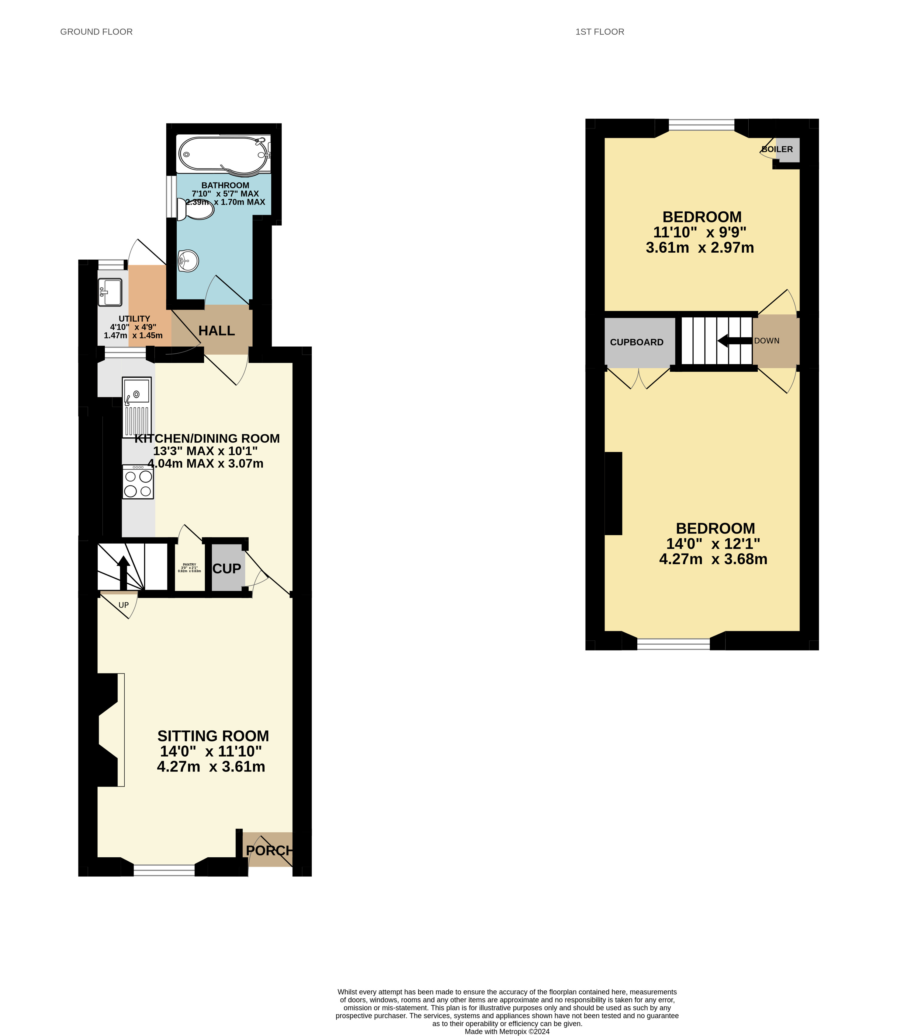 Utility Room 4'10" x 4'9" (1.47m x 1.45m).