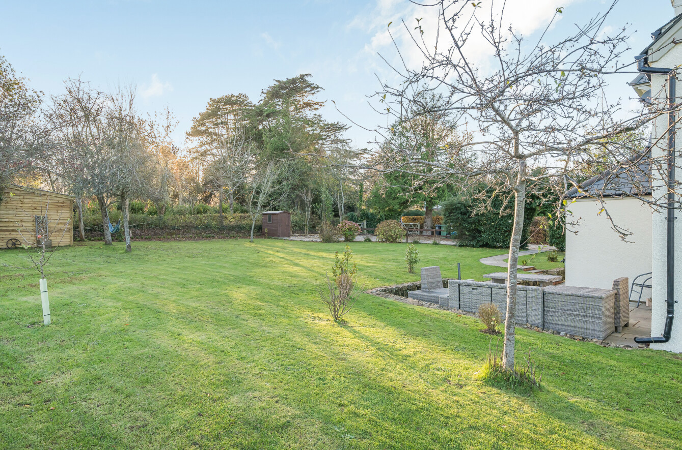 The property has the benefit of having two drives, one off od Old Lane which leads to the rear of the house and a second shared tarmac drive with Doverhay Place of which are private double timber gates onto its own private gravelled drive providing parking and turning facilities from which a pillared gated entrance gives access to the courtyard and main entrance. The property stands in surrounding level gardens laid predominantly to lawn with inset trees, a patio off the kitchen/dining room with low stone walled surround and a further private patio at the rear off the reception/games room. Within the grounds there is timber garden shed and a large detached timber workshop 21' x 12'4" with light and power.