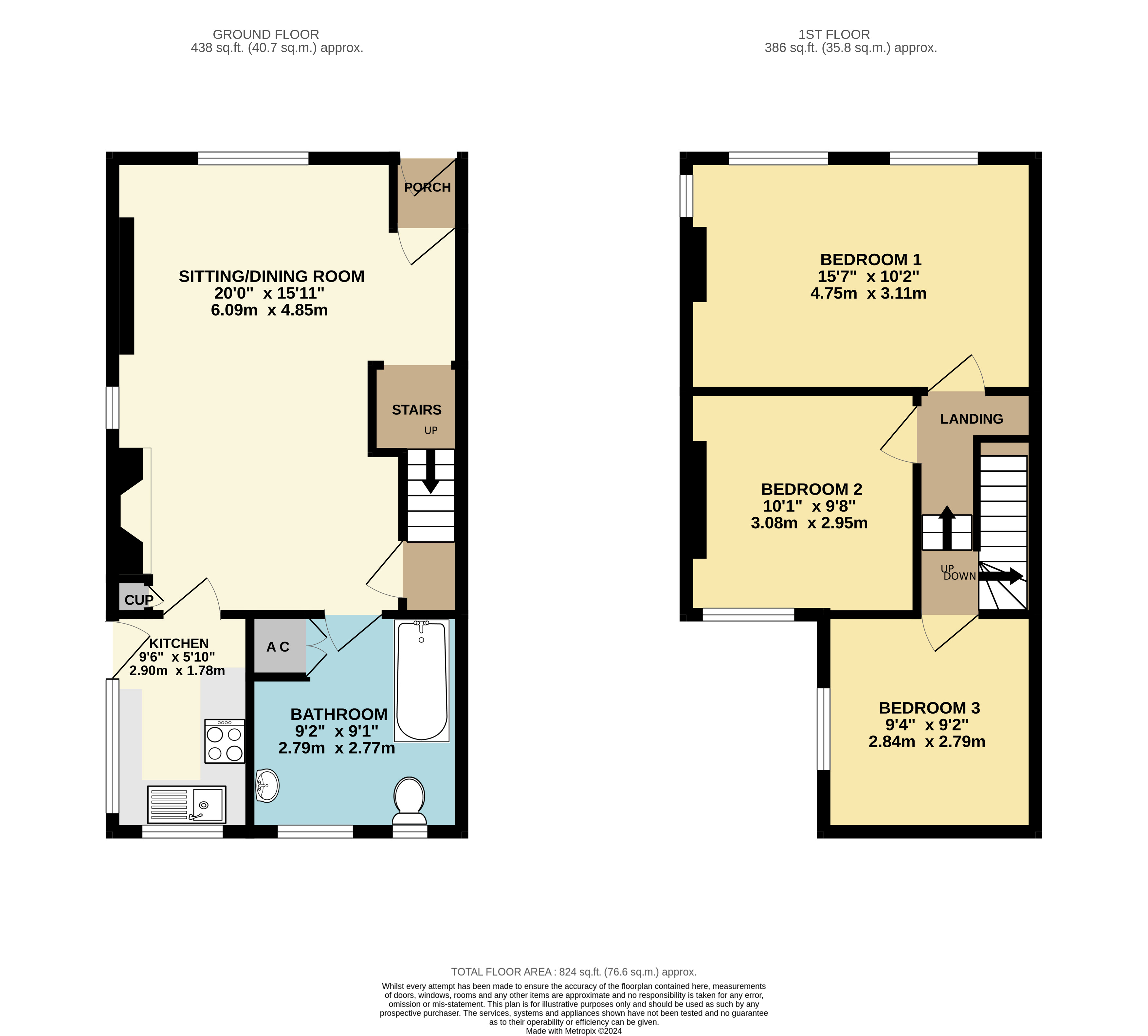 - Ground floor bathroom with shower over bath