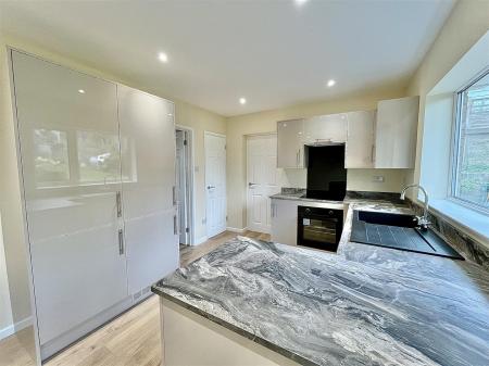 Kitchen/Diner - 5.79m x 2.92m (19'00 x 9'07) - Brand new high gloss wall and base level units with laminate workouts and up-stands, inset sink unit with drainer. Integral appliances include an electric oven with induction hob, extractor hood and glass splash-back, fridge/freezer. Space for a dining table, radiator, pantry cupboard, two rear aspect windows overlooking the garden. Door to the utility room.