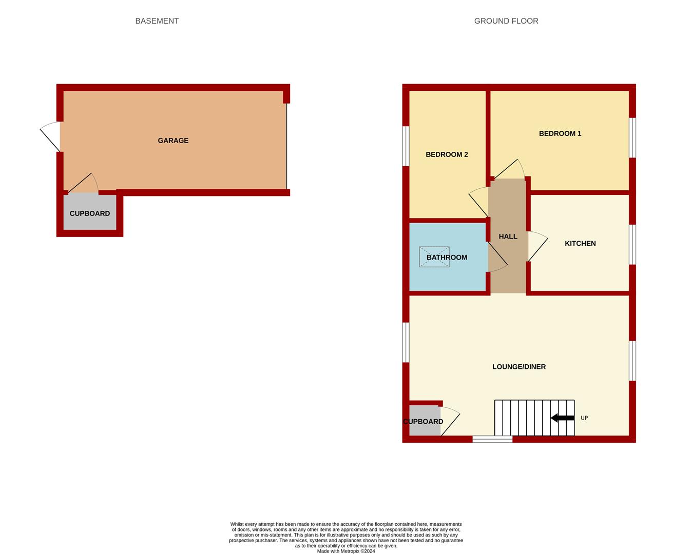 Garage - 5.72m x 2.59m (18'9" x 8'6") - Power and lighting, personnel door to the rear leading to garden area and door to understairs storage cupboard.
