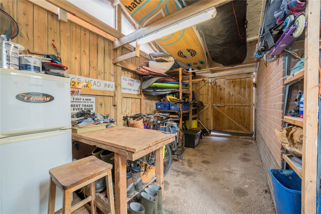 door leads through to a large garage with ample storage space.