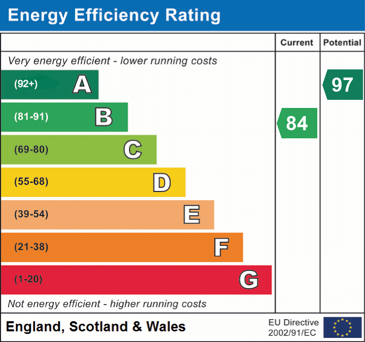 A walled front garden leads to a solid hardwood door opening onto the entrance hall. The ground floor features underfloor heating through out and radiator heating to the first floor. Part tiled the downstairs w/c is off the hall. Front facing the kitchen with built in appliances is open plan to the lounge. From the lounge stairs rise to the landing and French doors open to the patio garden.