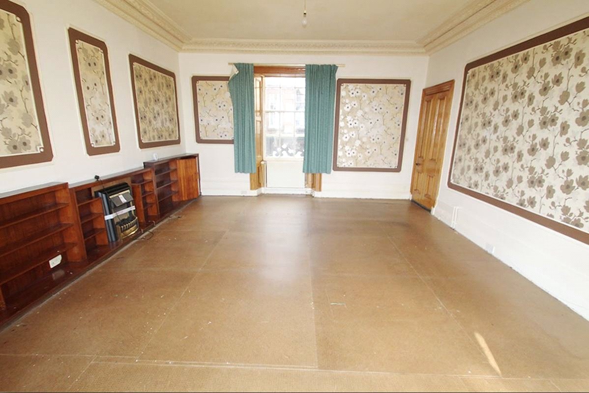 On the first floor of this traditional C listed building these characteristic flat opens into the reception hall leading to a large lounge with high ceilings and grand bay window. The kitchen area offers a fantastic opportunity to reconfigure and maximise space. There are two double bedrooms, one with extensive storage, the bathroom has both a bath and shower cubicle and is a generous size.