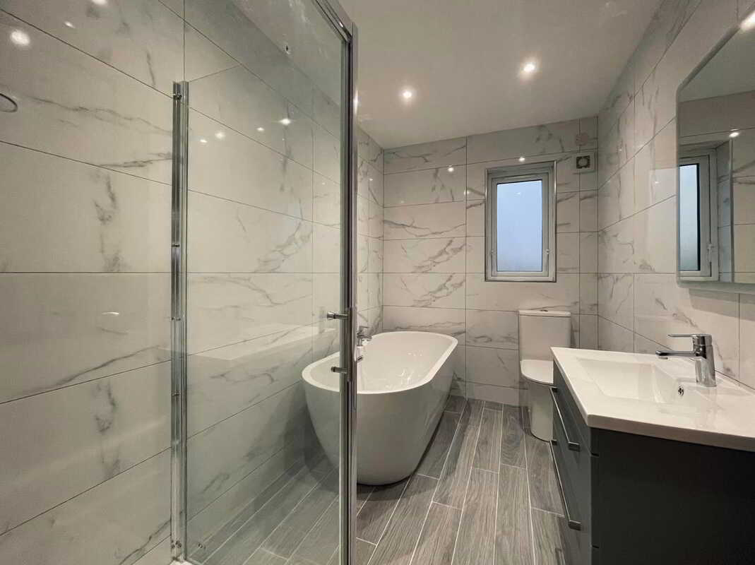 Full height wall tiling to shower enclosures in en-suite and bathroom