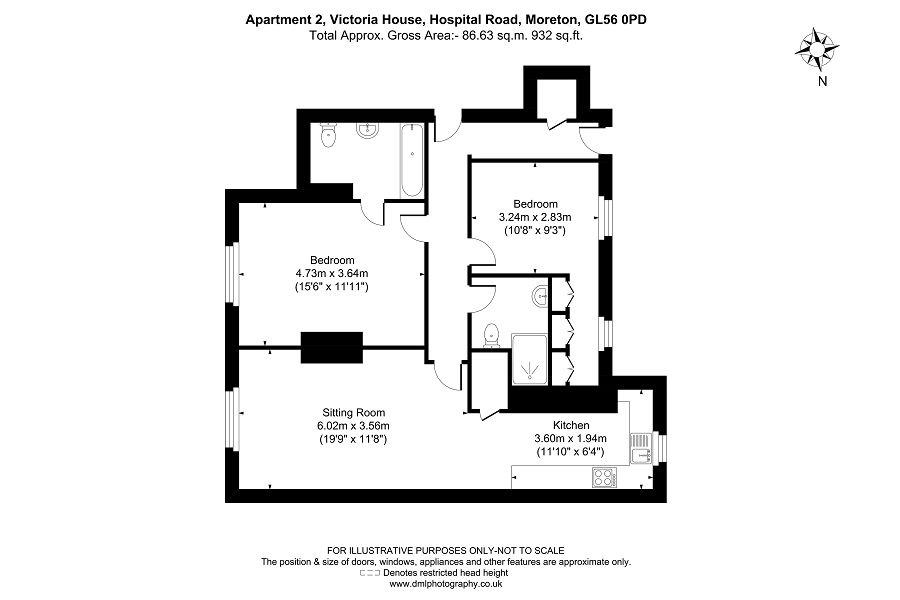From our Moreton in Marsh, proceeding on foot, cross the main road bearing left then immediately right into Corders Lane at the end of which is Hospital Road. Turn right continuing virtually to the end of the road and Victoria House is then positioned on the left hand side. The parking bays for this property are at the rear of the carpark on the left hand side.