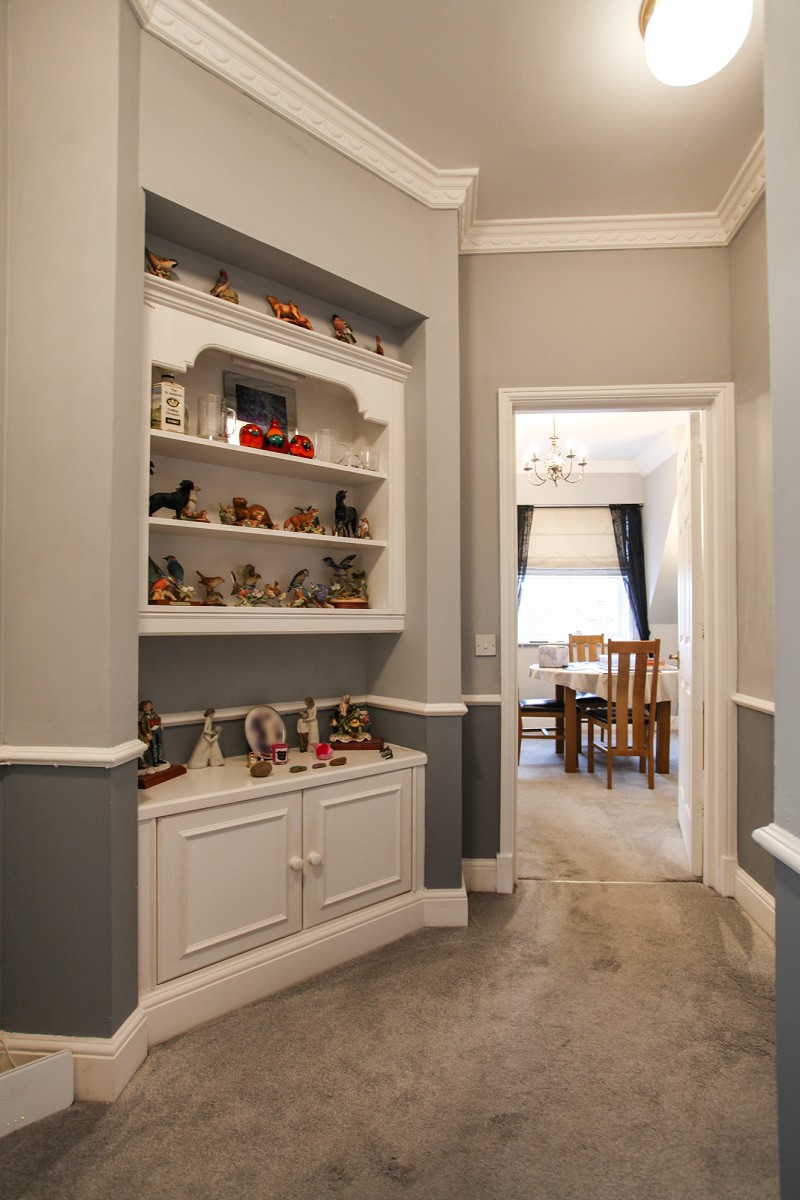 Highlighted dado rail, Fischer radiator, circuit breaker unit, intercom system to the front door and corner offset display unit with concealed lighting and cupboard below and immersion heater control. Airing cupboard with pressurised hot water system.