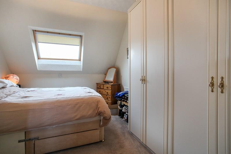 Recently renewed Velux window, elevated aspect along Moreton High Street towards distant countryside, two double built in wardrobes and a Fischer radiator.