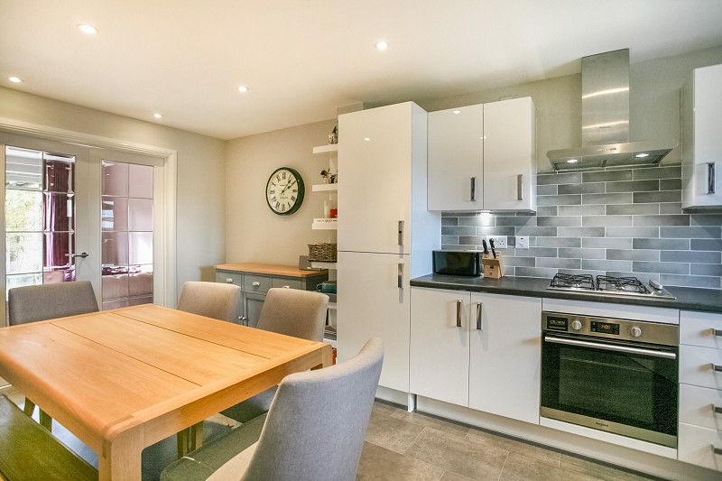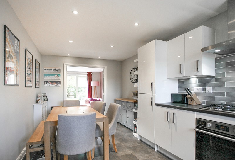 The property has well-planned accommodation, offering a light and airy larger kitchen/dining room with French glazed doors leading in to the living room. There is a smart modern fitted kitchen with built-in appliances and plenty of space for a dining table with six chairs. The rear living room has patio doors leading on to a south-westerly facing garden, taking full advantage of summers days with a second seating patio area perfect for alfresco dining.