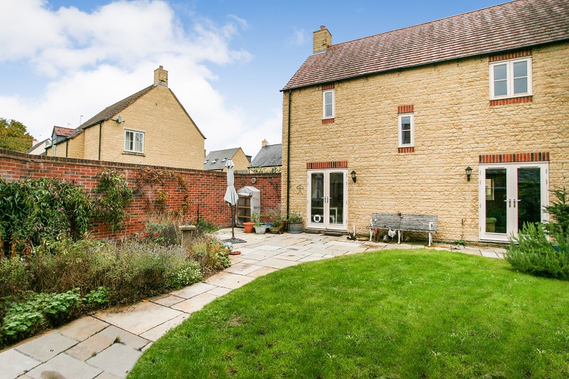 This Cotswold stone double-fronted detached family residence was built in 2012. The property offers a light and airy kitchen/dining room with plenty of built-in storage units and integrated appliances. There are French doors leading out on to a most attractive part-walled mature landscaped garden with direct access in to the garage. There are double doors leading in to the living room which also has patio doors to the rear garden. At first floor level there are three bedrooms, the master having an ensuite shower room and fitted double wardrobe. The property has gas fired central heating from a combination boiler, sealed unit double glazing and a useful understairs cloaks area.
