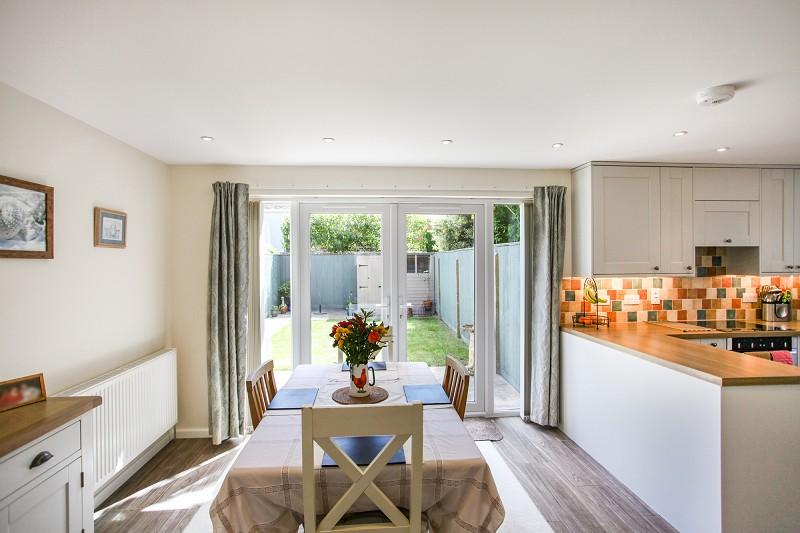 The property has a spacious living room with a full-width diner kitchen to the rear with a good compliment of units and integrated appliances and a full-height picture window with double doors leading on to the completely enclosed south facing rear garden.
