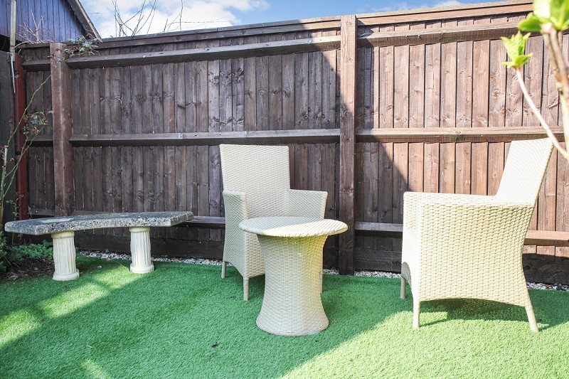 Timber cabin, bin store (13.85m x 2.68m). L-shaped astro turf all with fenced surround. Outside water tap. Rear patio (4.75m x 3.77m) flagged base and taking full advantage of the afternoon and evening sun, an excellent area for alfresco dining. Gated access to courtyard.