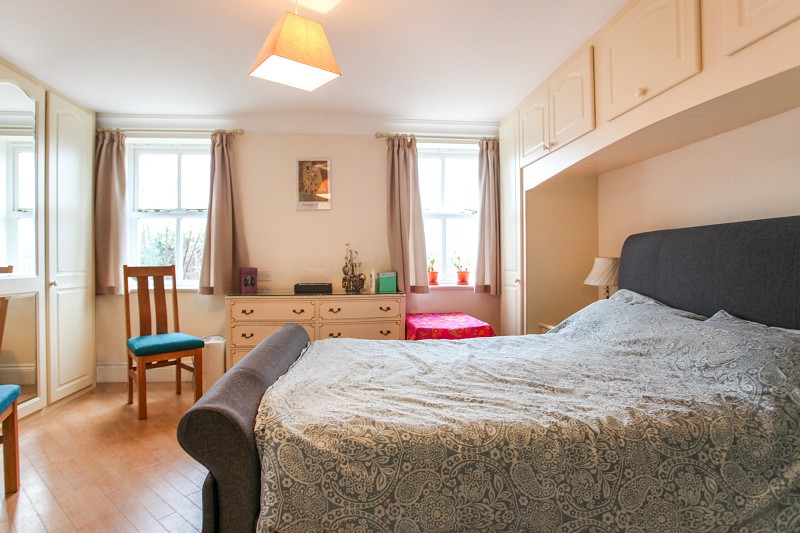 With beech style Karndean flooring, one double and two single wardrobes fitted to one wall with two mirrored doors, fitted bedroom furniture opposite with two single wardrobes, five central cupboards, two bedside cabinets forming well for bed, two wall mounted light points, telephone point and single radiator. T.V. aerial point.