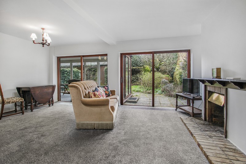 Open brick fireplace (currently unused) with brick hearth and timber mantel. Telephone point. Sub floor radiator with grill above along the whole of the room. Twin hardwood framed double glazed patio doors one leading on to the garden and one into the rear conservatory. Double radiator. Easy staircase returning to first floor. Built in understairs cupboard.