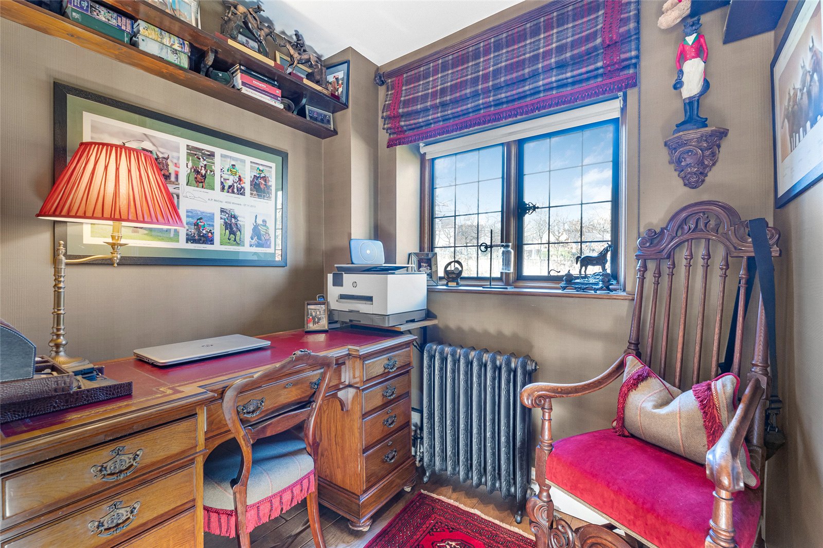 Study: Stone mullion leaded window to rear aspect, engineered oak floor.